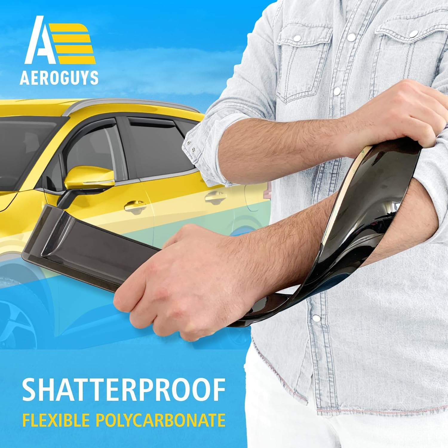 - Incredibly Durable AEROGUYS Auto Window Deflectors – They are made with strong and tough polycarbonate which is clear and scratch-resistant. They also provide UV protection making your ride more comfortable under all weather conditions.