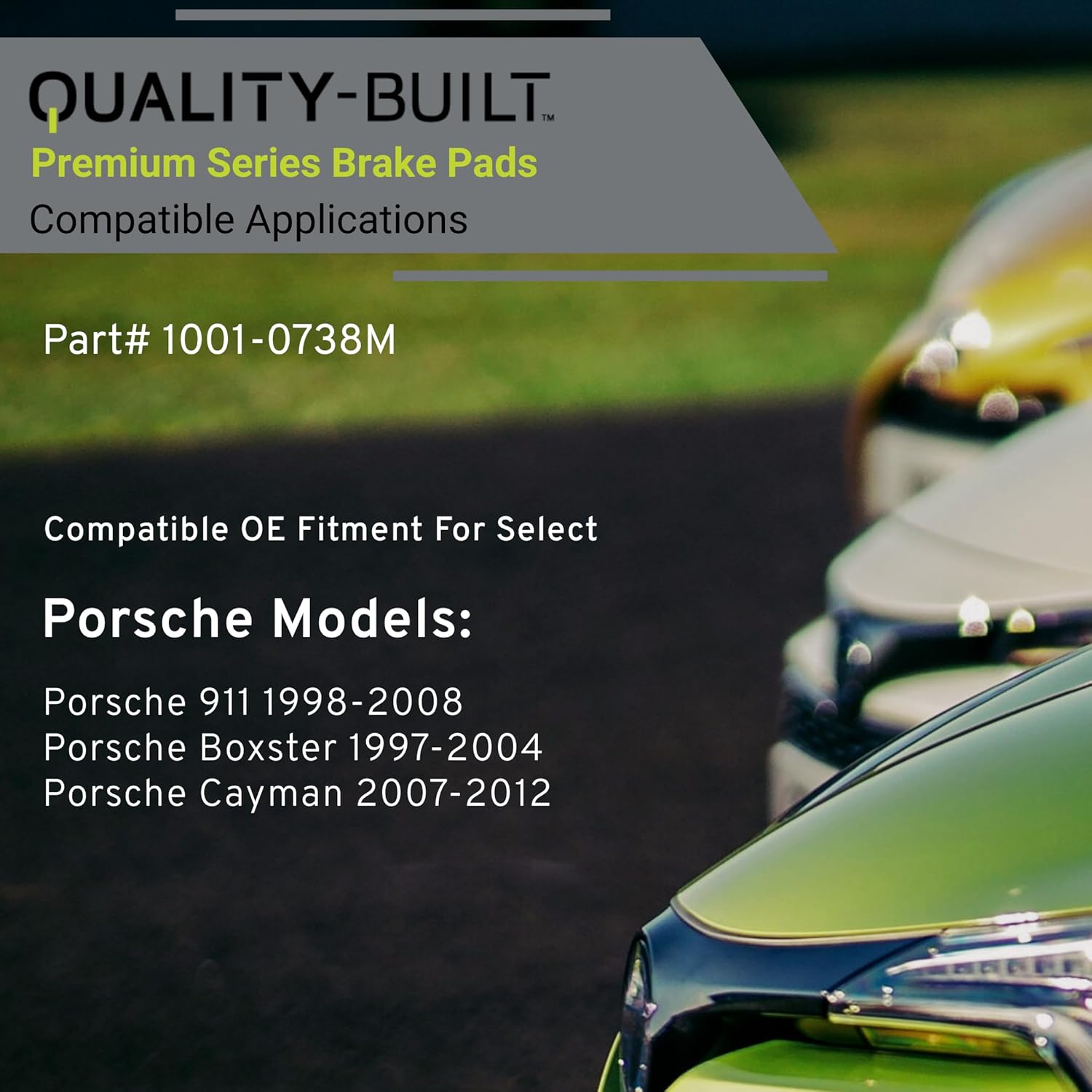 Premium Semi-Metallic Rear Brake Pads (1001-0738M) Compatible with Porsche 911 1998-2008, Porsche Boxster 1997-2004, Porsche Cayman 2007-2012