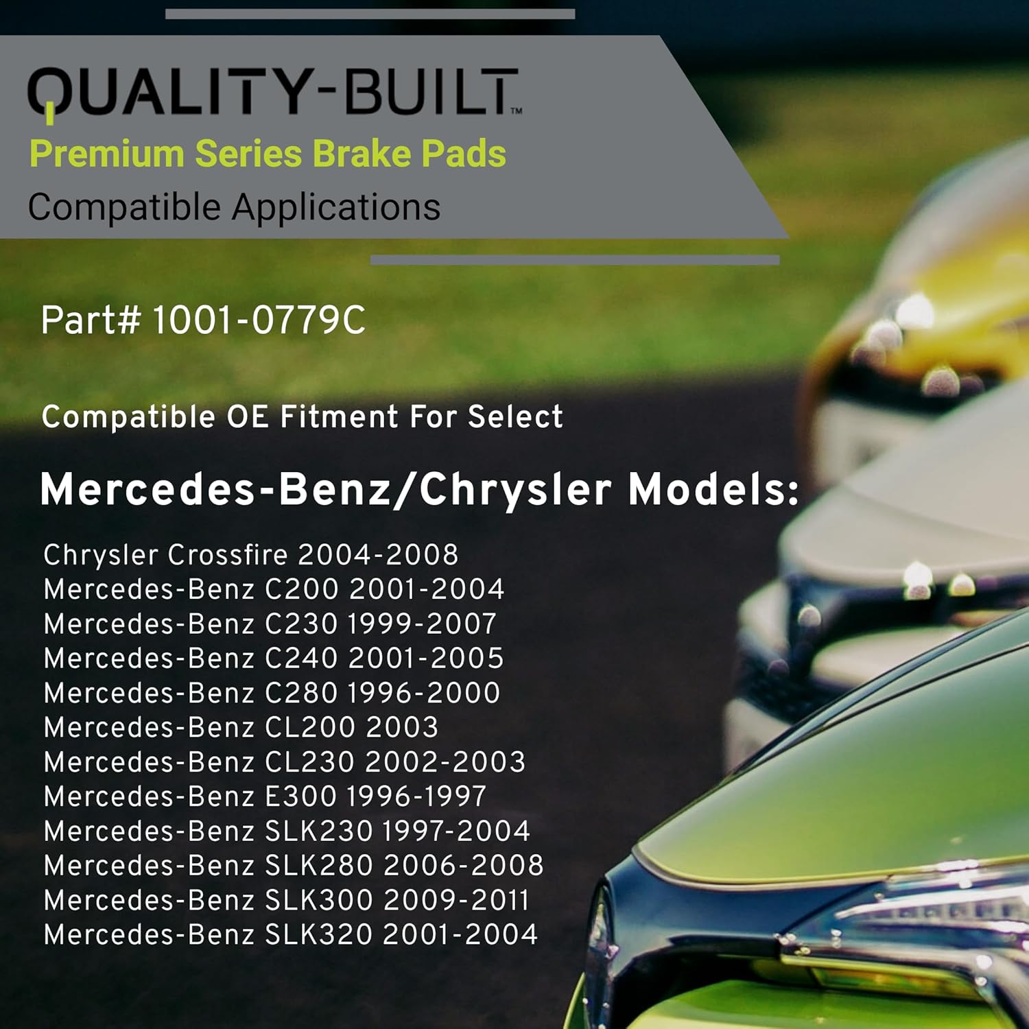 Premium Ceramic Rear Brake Pads (1001-0779C) Compatible with 1996-2011 Chrysler/Mercedes-Benz (C200/C230/C240/C280/CL200/CL230/Crossfire/E300/SLK230/SLK280/SLK300/SLK320)