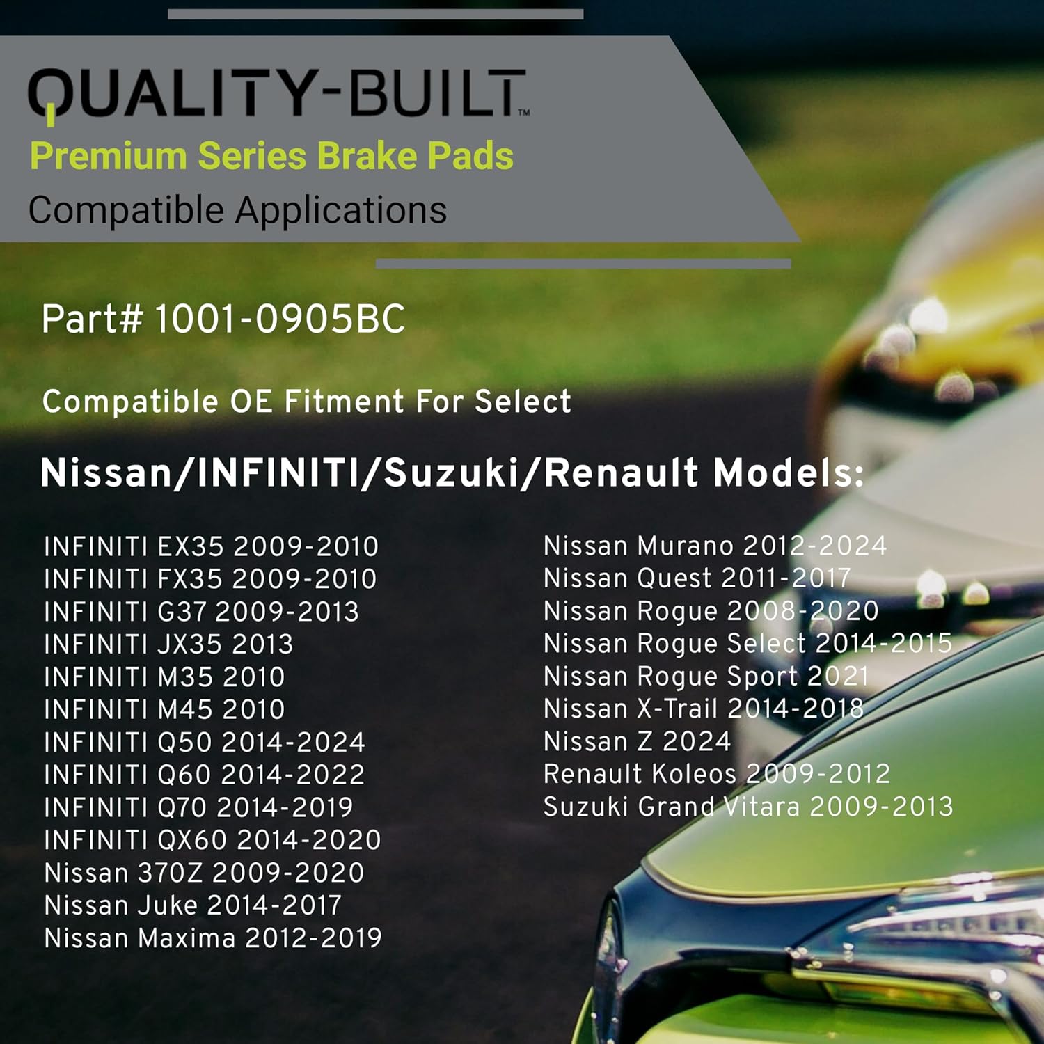 Premium Ceramic Rear Brake Pads (1001-0905BC) Compatible with 2008-2024 INFINITI/Nissan/Suzuki (370Z/EX35/FX35/G37/Grand Vitara/Juke/JX35/M35/M45/Maxima/Murano/Q50/Q60/Q70 & More)