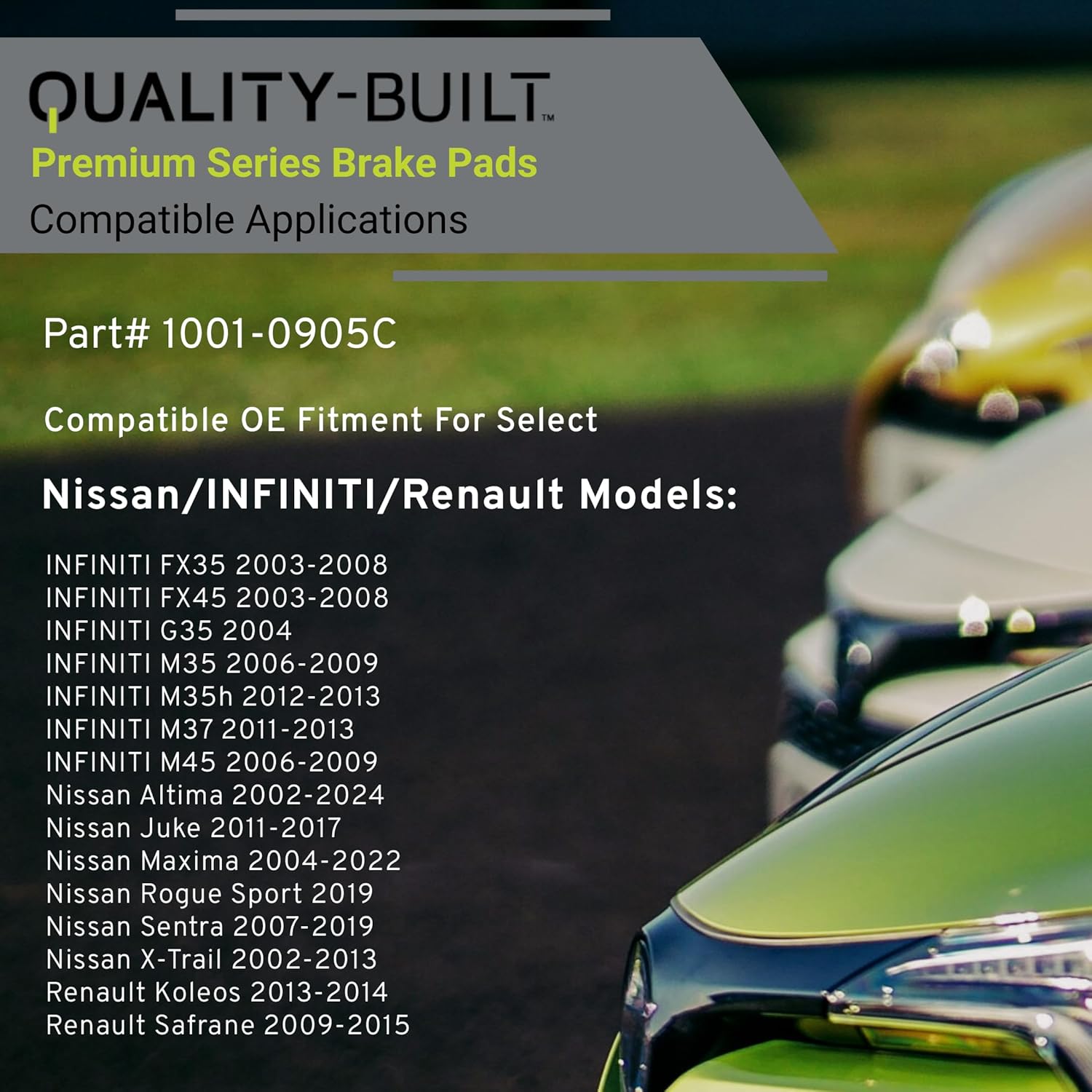 Premium Ceramic Rear Brake Pads (1001-0905C) Compatible with 2002-2024 INFINITI/Nissan (Altima/FX35/FX45/G35/Juke/M35/M35h/M37/M45/Maxima/Rogue Sport/Sentra & More)