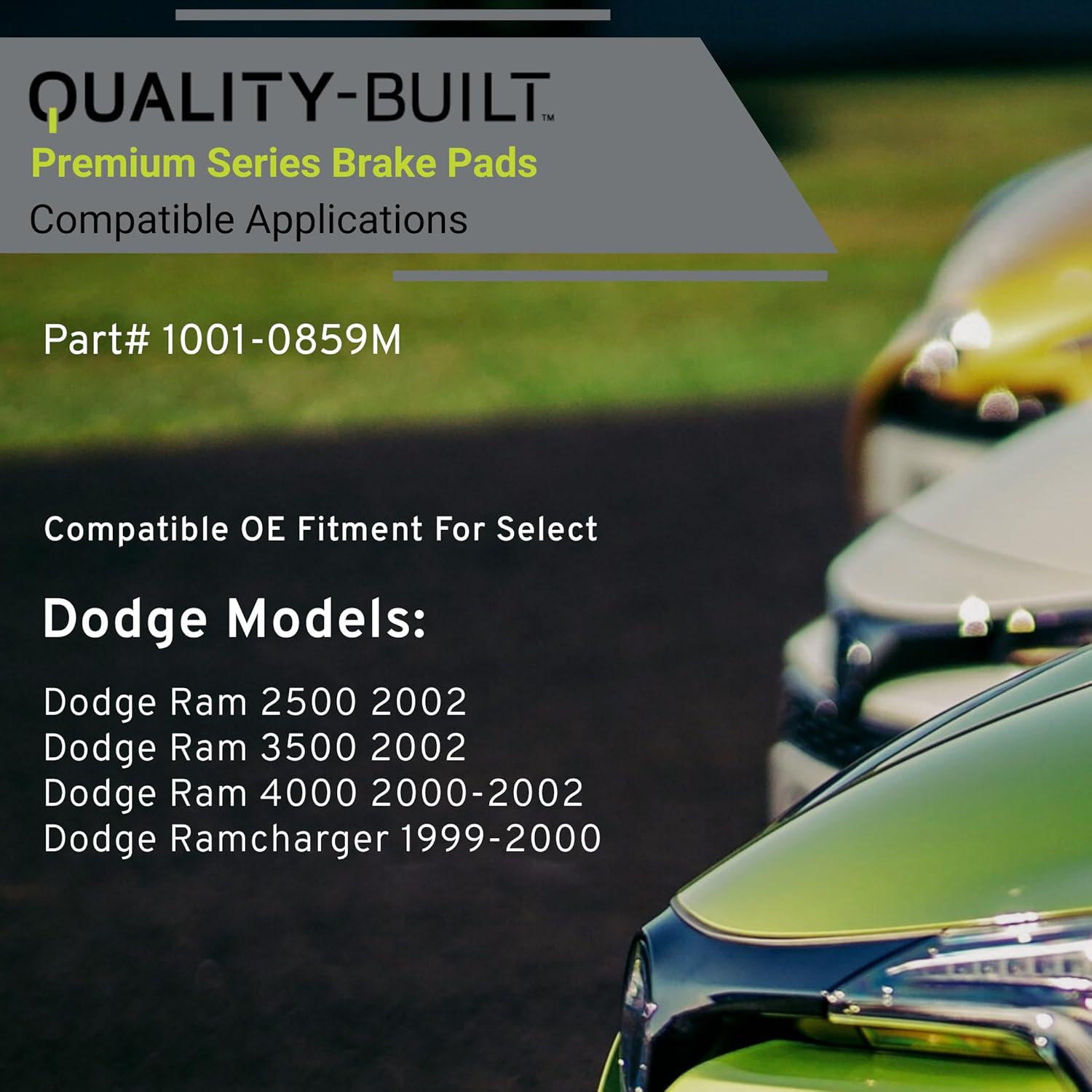 Premium Semi-Metallic Front Brake Pads (1001-0859M) Compatible with Dodge Ram 2500 2002-2002, Dodge Ram 3500 2002-2002, Dodge Ram 4000 2000-2002, Dodge Ramcharger 1999-2000