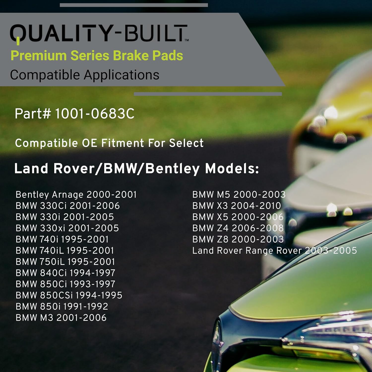 Premium Ceramic Rear Brake Pads (1001-0683C) Compatible with 1991-2010 BMW/Land Rover (330Ci/330i/330xi/740i/740iL/750iL/840Ci/850Ci/850CSi/850i/M3/M5/Range Rover/X3/X5/Z4/Z8 & More)