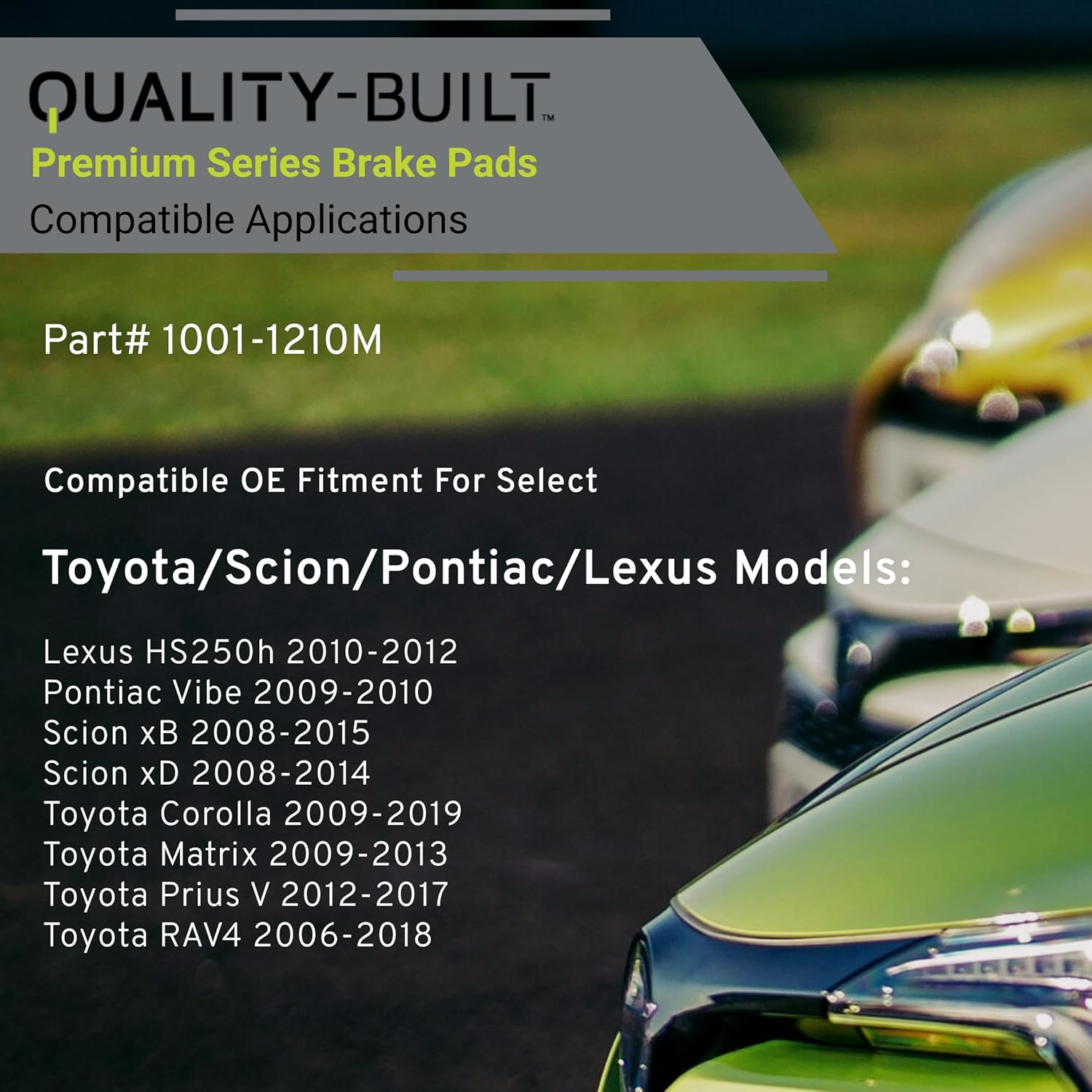 Premium Semi-Metallic Front Brake Pads (1001-1210M) Compatible with 2006-2019 Lexus/Pontiac/Scion/Toyota (Corolla/HS250h/Matrix/Prius V/RAV4/Vibe/xB/xD)