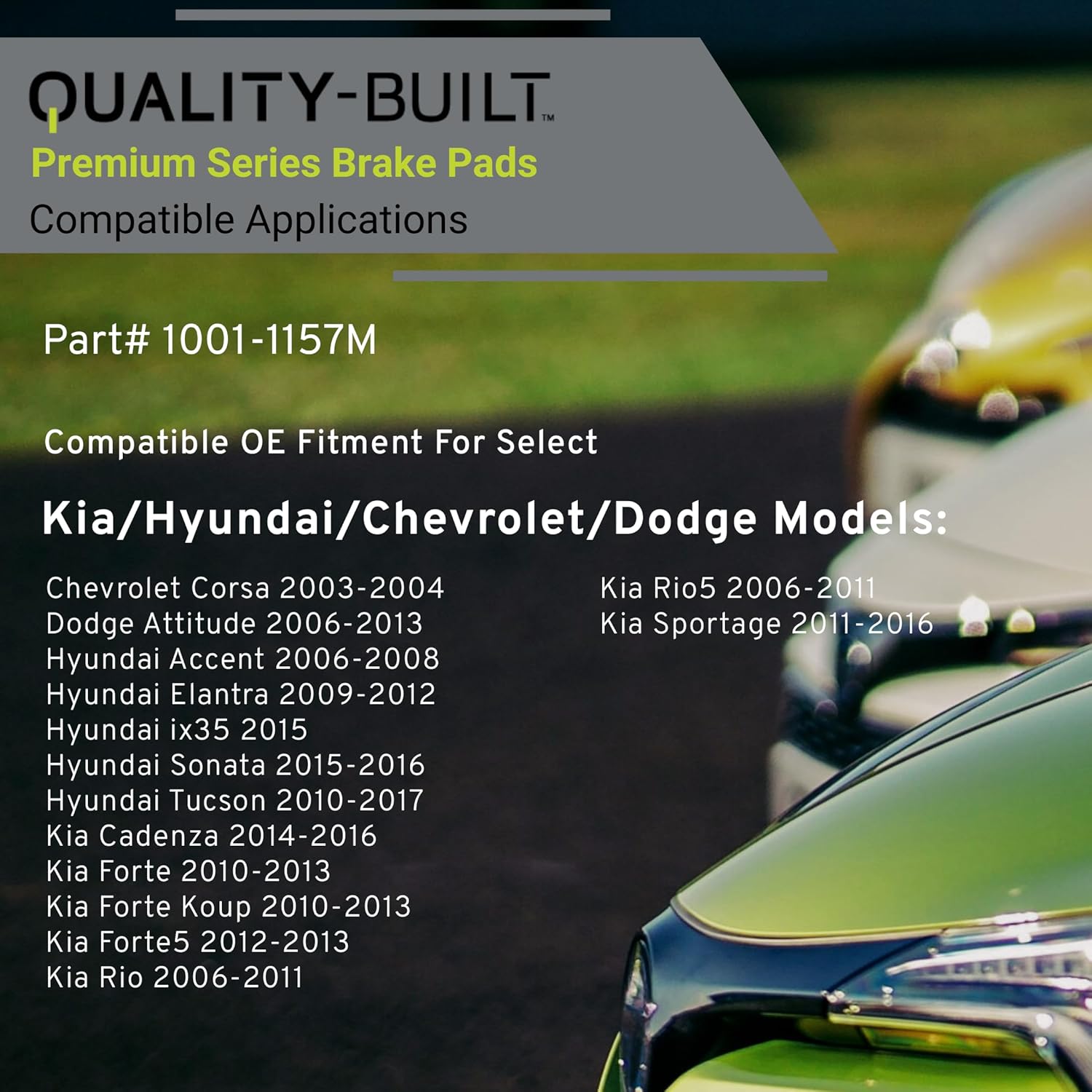 Premium Semi-Metallic Rear Brake Pads (1001-1157M) Compatible with 2003-2017 Chevrolet/Dodge/Hyundai/Kia (Accent/Attitude/Cadenza/Corsa/Elantra/Forte/Forte5/ix35/Rio/Rio5/Sonata & More)