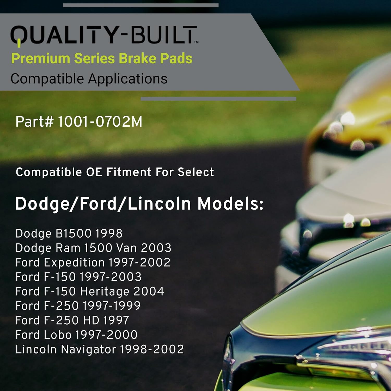 Premium Semi-Metallic Front Brake Pads (1001-0702M) Compatible with 1997-2004 Dodge/Ford/Lincoln (B1500/Expedition/F-150/F-150 Heritage/F-250/F-250 HD/Lobo/Navigator/Ram 1500 Van)
