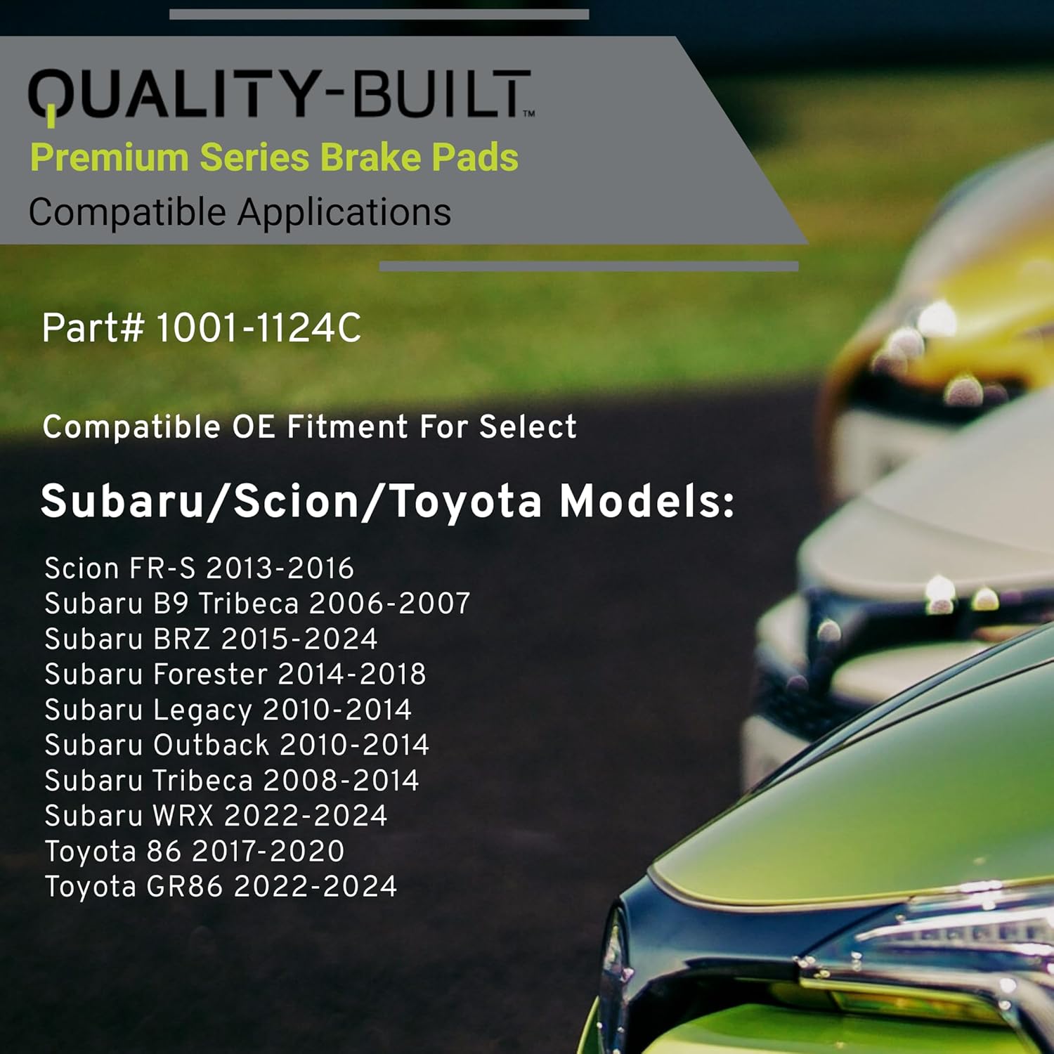 Premium Ceramic Rear Brake Pads (1001-1124C) Compatible with 2006-2024 Scion/Subaru/Toyota (86/B9 Tribeca/BRZ/Forester/FR-S/GR86/Legacy/Outback/Tribeca/WRX)