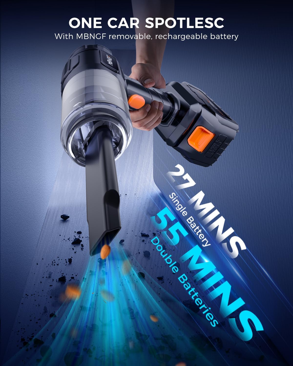 - ăPortable and Cordless Designă Say goodbye to tangled cords and heavy devices. The portable and cordless design of the MBNGF X9 ULTRA car vacuum makes it easy to maneuver and use anywhere.