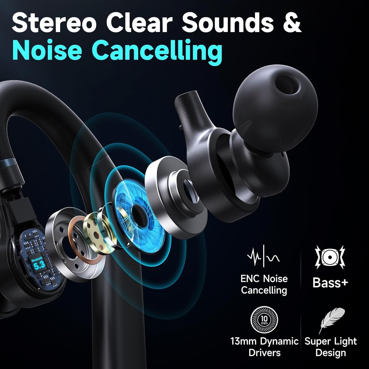 - Dual Mic Noise Canceling Headset -- Wireless headset advanced noise canceling technology and combines 2 built-in HD microphones and high-quality speakers which can eliminate background noise without missing any single conversation details and the call sound will be more transparent.Don't worry about interruptions on listing to music or calling.