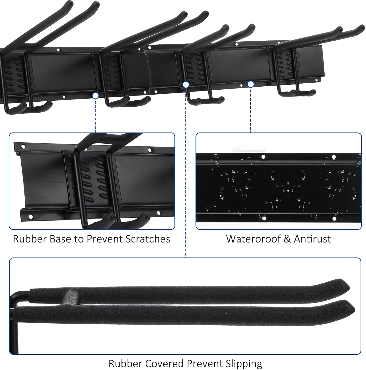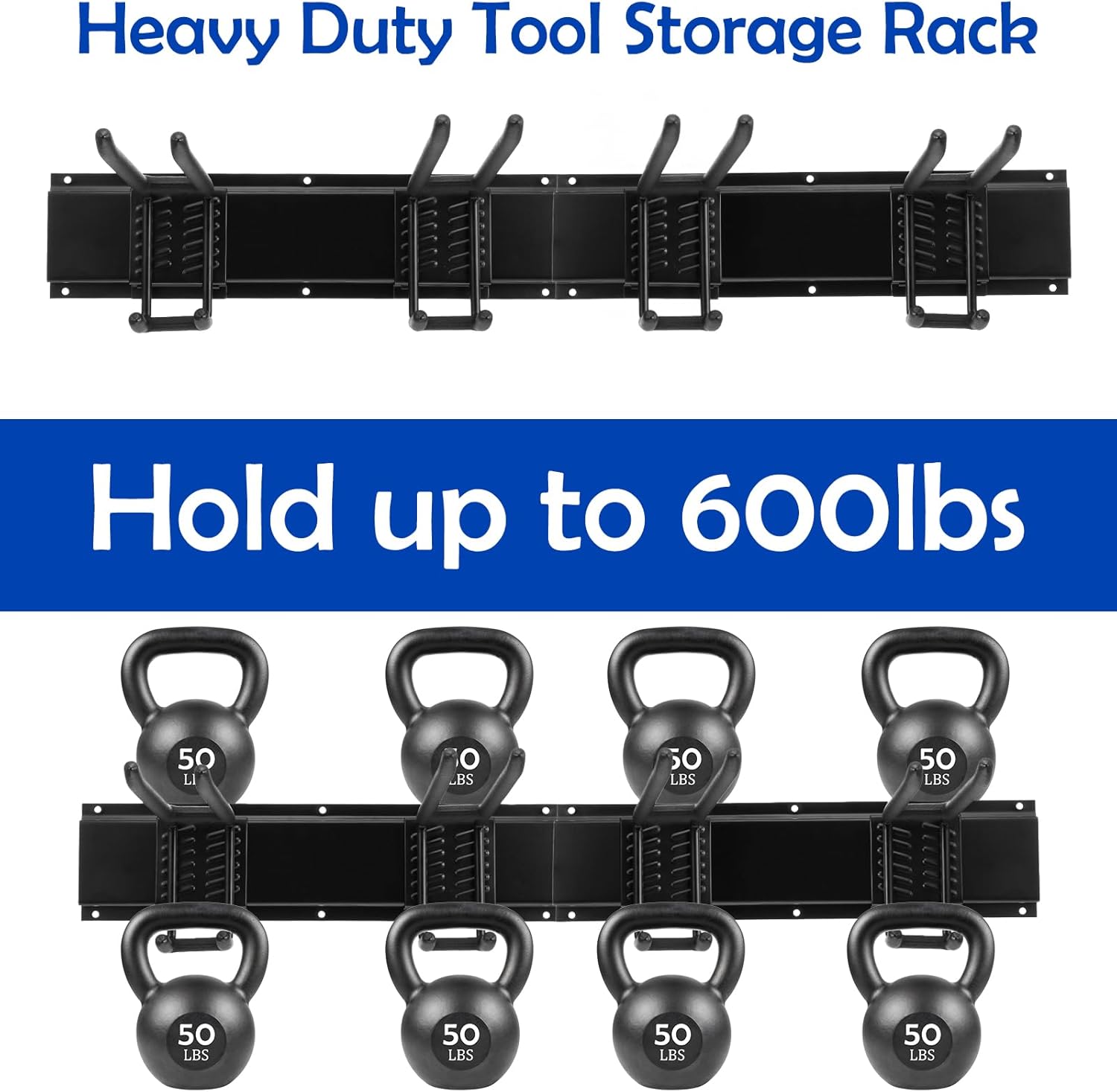 - Sturdy Rails & Coated Hooks:Garage storage rack hooks are made of Iron and plastic which can load 350lbs,hooks with rubber coated that can prevent your tools from scratched or slipping.