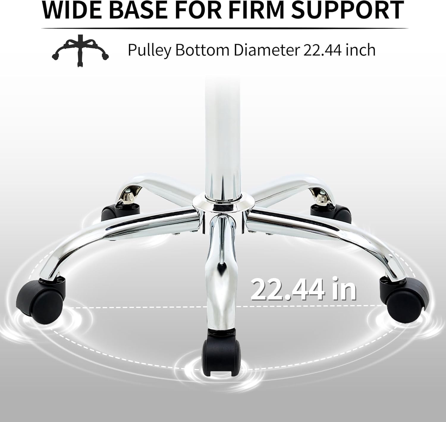 - Metal Frame Legs and Smooth Wheels. The 5 sturdy metal legs provide exceptional stability, ensuring the stool remains secure while you sit. The built-in 360° swivel wheels allow for smooth and effortless movement, offering both functionality and mobility in any setting. Plus, the wheels are designed to be floor-friendly, so they won’t cause damage to your surfaces