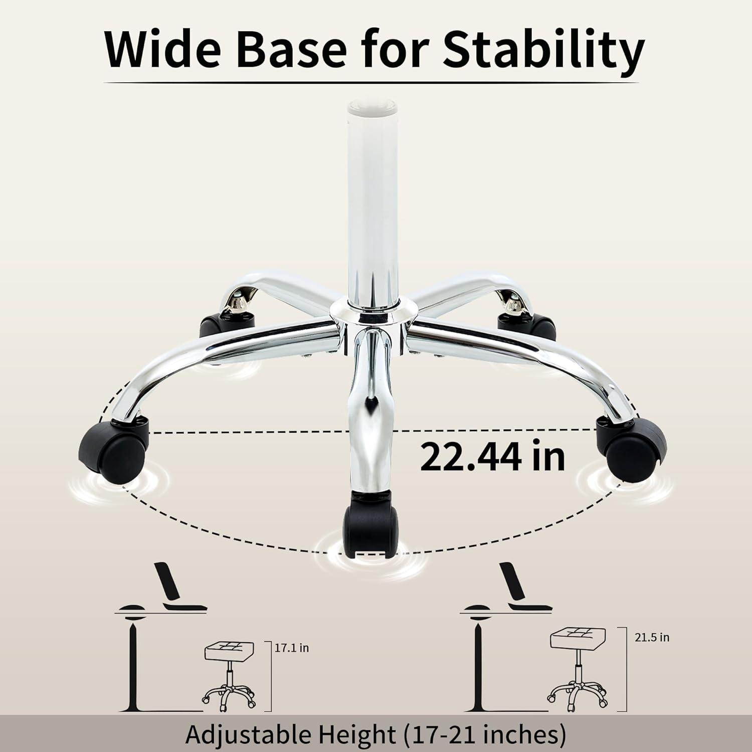 - Durable Metal Base: Made from high-strength, this base is both lightweight and sturdy. It provides stable support while making the stool easy to move, ensuring long-lasting durability and reliable performance in busy work environments