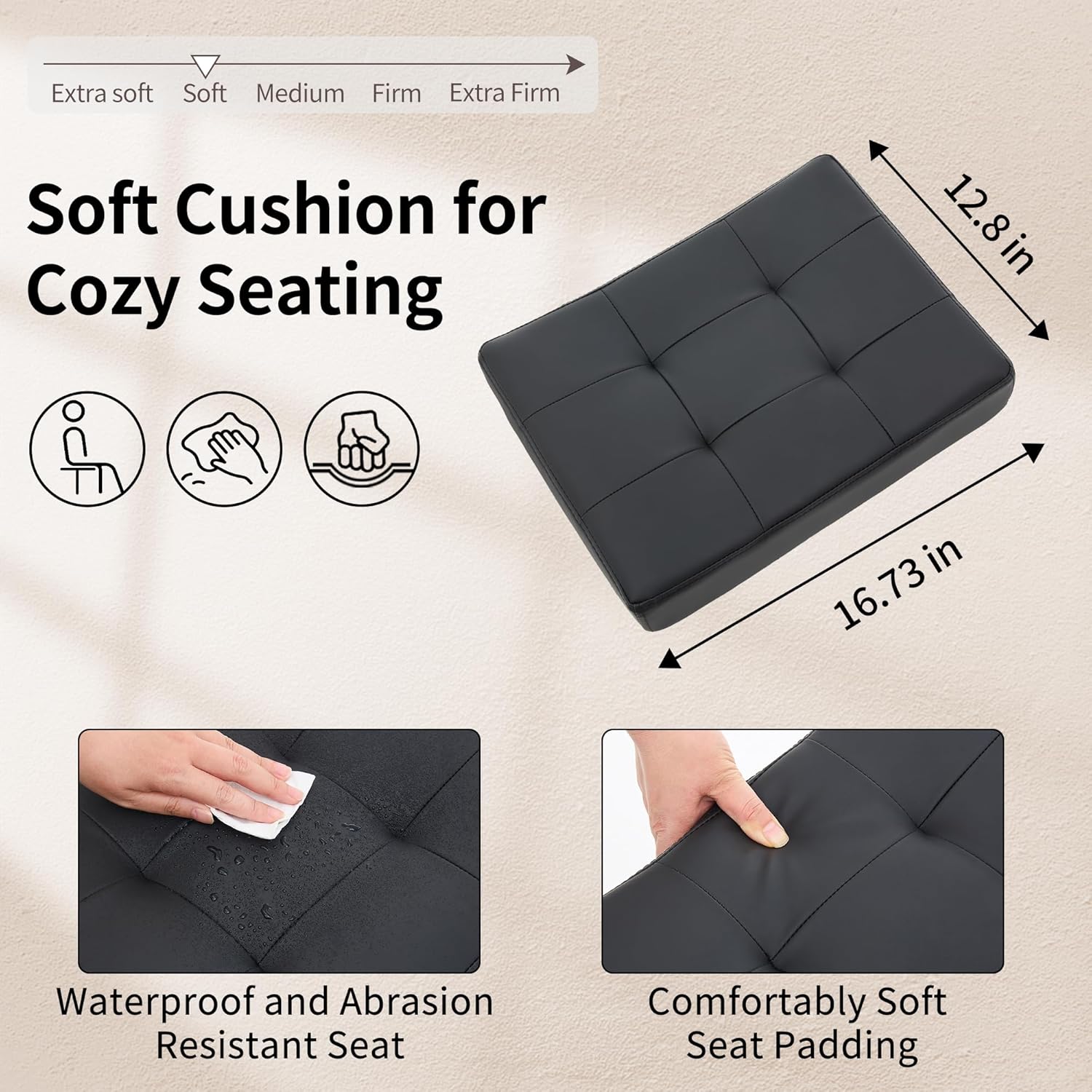- High Quality and Durable Fabric: The seat cushion of our swivel stool is crafted from high-quality faux leather that is water-resistant and easy to clean with a damp cloth. Both the seat and backrest are padded with high-density foam, providing lasting comfort even during extended periods of use