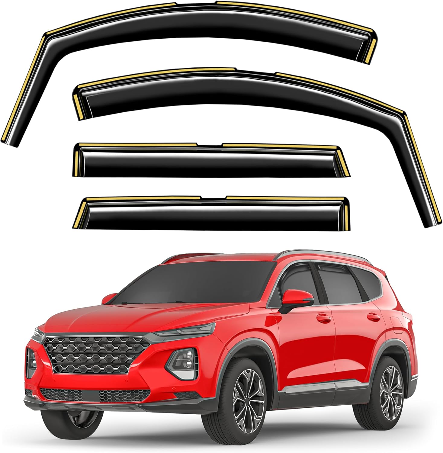 in-Channel Window Rain Guards Fit for Hyundai Santa Fe 5 Seats 2019-2023(Not for XL 7-Seats) Extra Durable Window Visors Window Deflectors Vent Visors Vent Shades Car Accessories-4 pcs 2-Q16