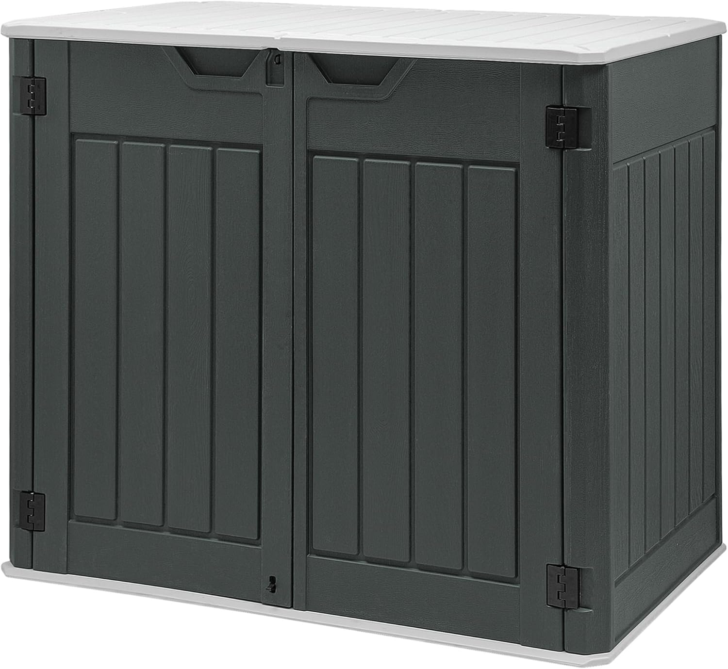 - All-Weather Resilience: Built from durable resin, this horizontal garden storage shed provides UV protection and waterproof performance, featuring a stylish wood-textured finish that resists fading and a lid designed to keep water out