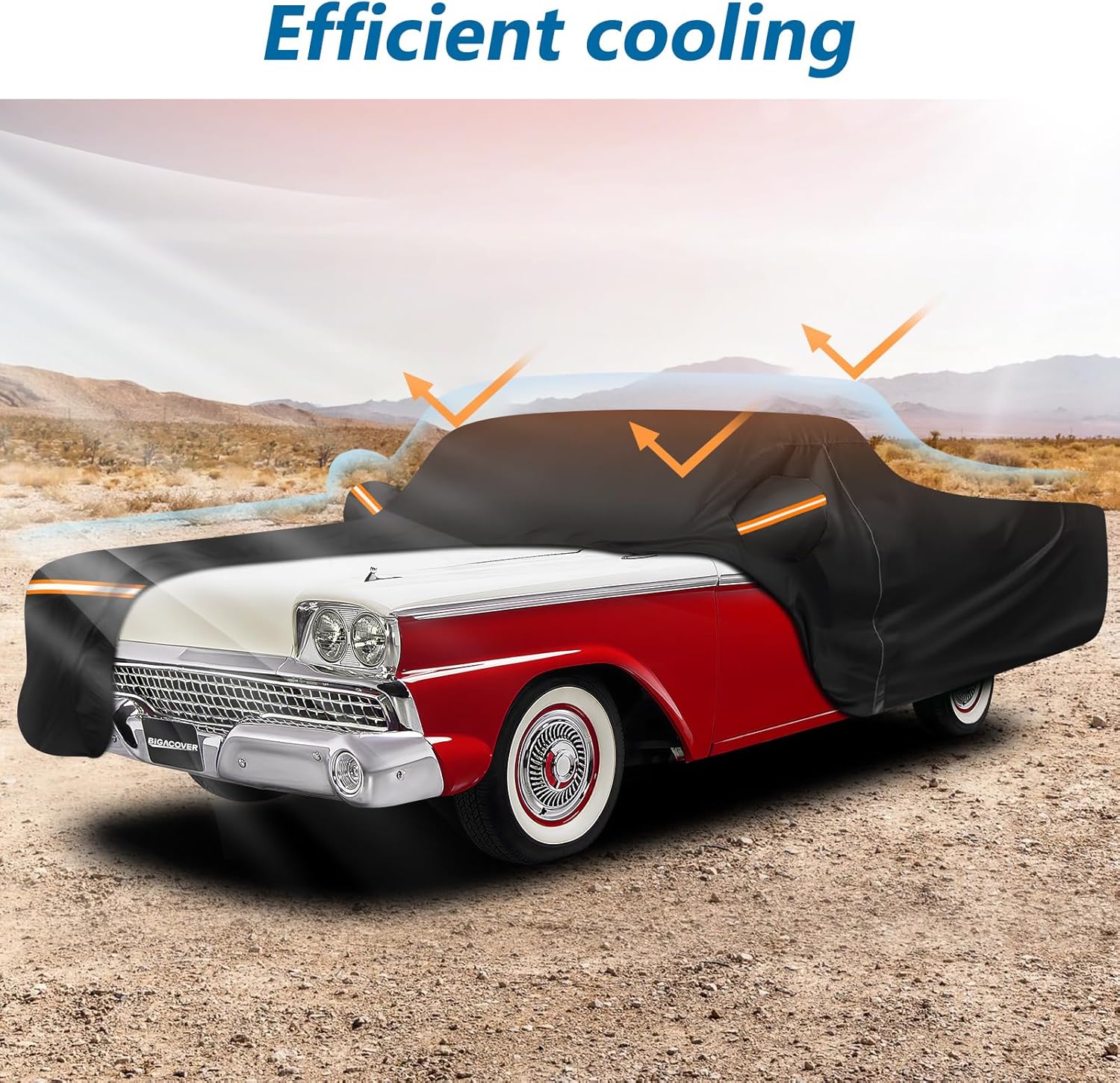 Car Cover for Ford Ranchero 1957-1959 1968-1979, Waterproof 210D Oxford Cloth and Cotton Cover Outdoor Full Car Covers with Zipper Windproof Heavy Duty All Weather Protectio