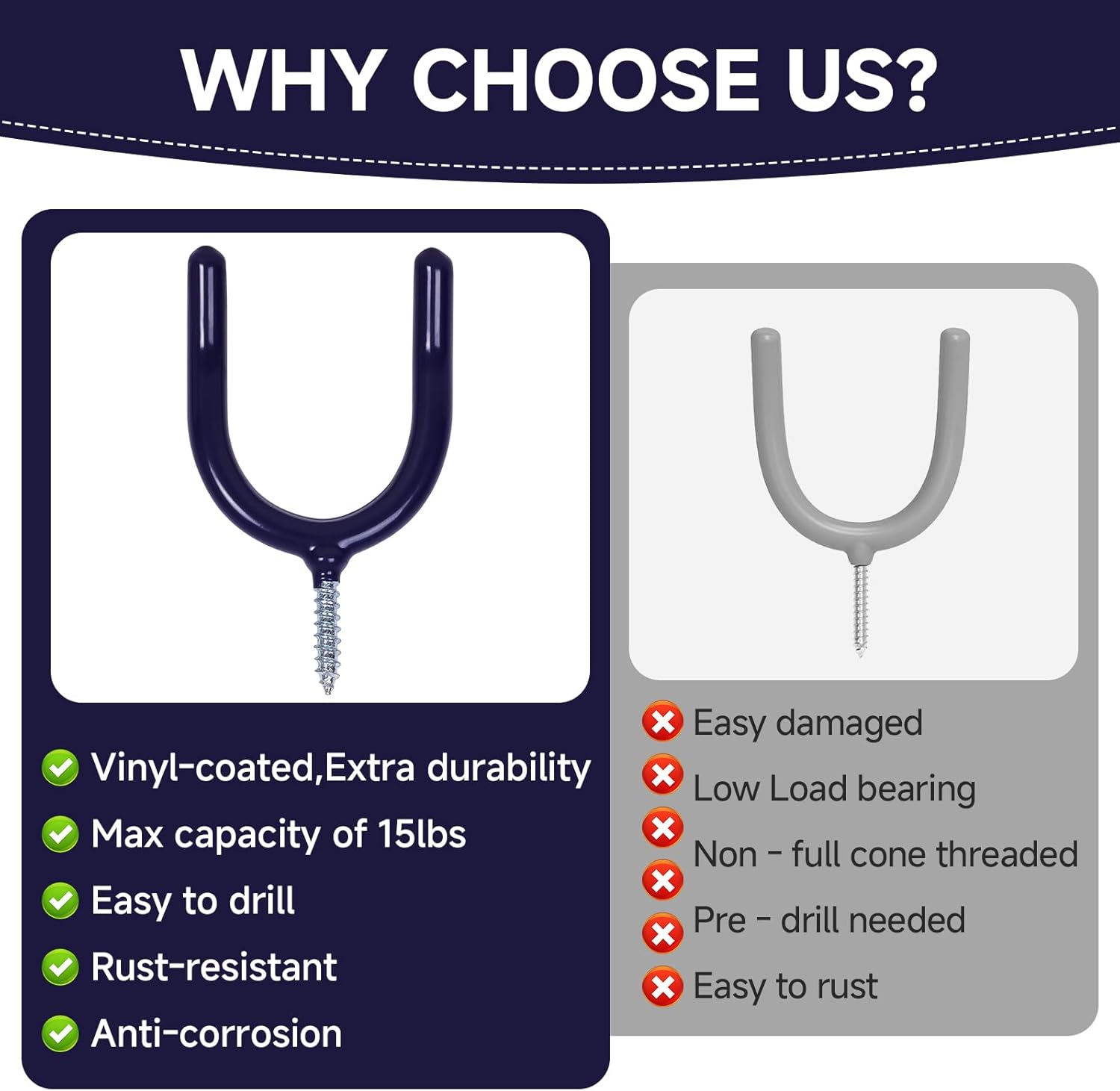12 Pack Garage Storage System Steel U Hooks with Anti-Slip Coating Home Improvement and Organization Screw in Hooks Easy Wall Mounting Heavy Duty Bike and Ladder (Blue, 12 Pack)