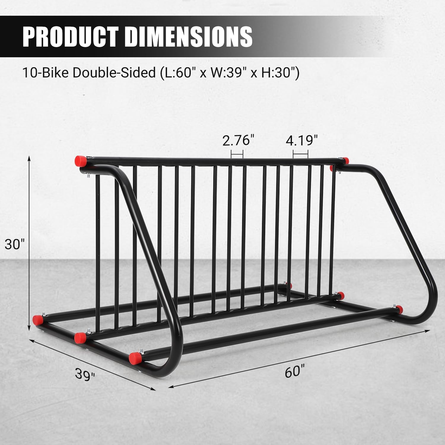 - [SPACE-SAVING VERTICAL DESIGN] Maximize floor space with our bike parking rack’s compact footprint (60"x39"x30"). Holds 10 bikes vertically—ideal for tight garages, hallways, or outdoor parking zones. No more cluttered floors!