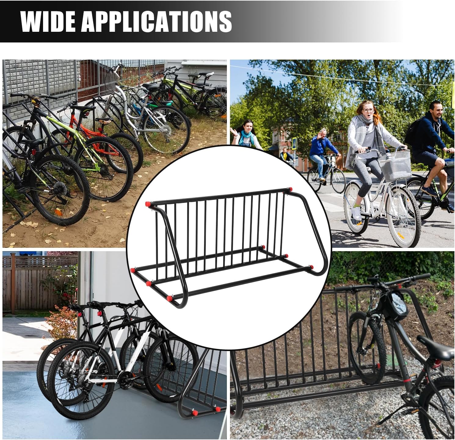 - [COMMERCIAL-GRADE DURABILITY] Built with heavy-duty powder-coated steel, this commercial bike rack resists rust and harsh weather, perfect for high-traffic areas like schools, shops, or apartments. Its sturdy frame supports daily use without bending or wear.