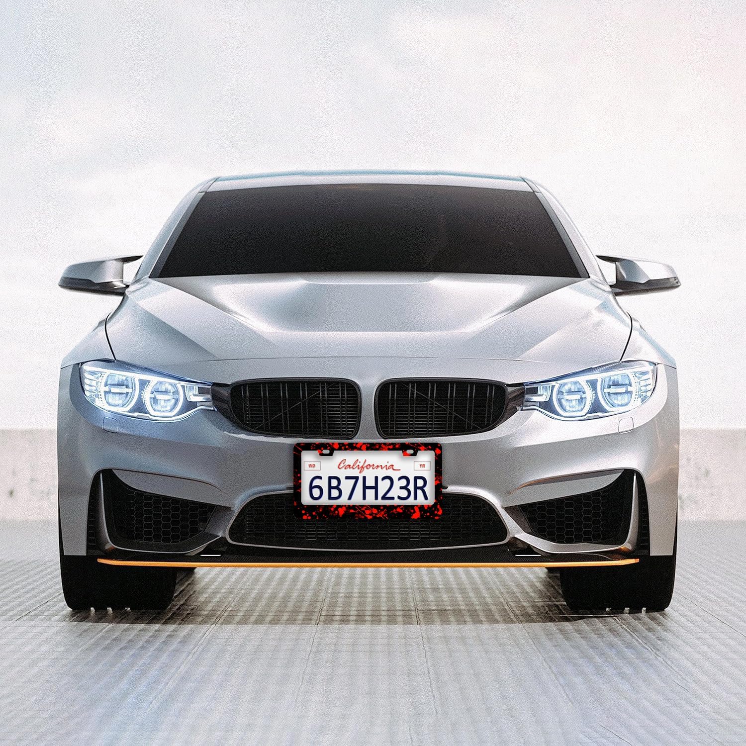 Blood Splattered Red Black License Plate Frames - 2 Pcs Set 2 Holes Stainless Steel Metal Auto Car Accessories Decoration License Plate Frame Cover Size 6.3" x 12.2" Fit US Vehicles for Women Men Gift