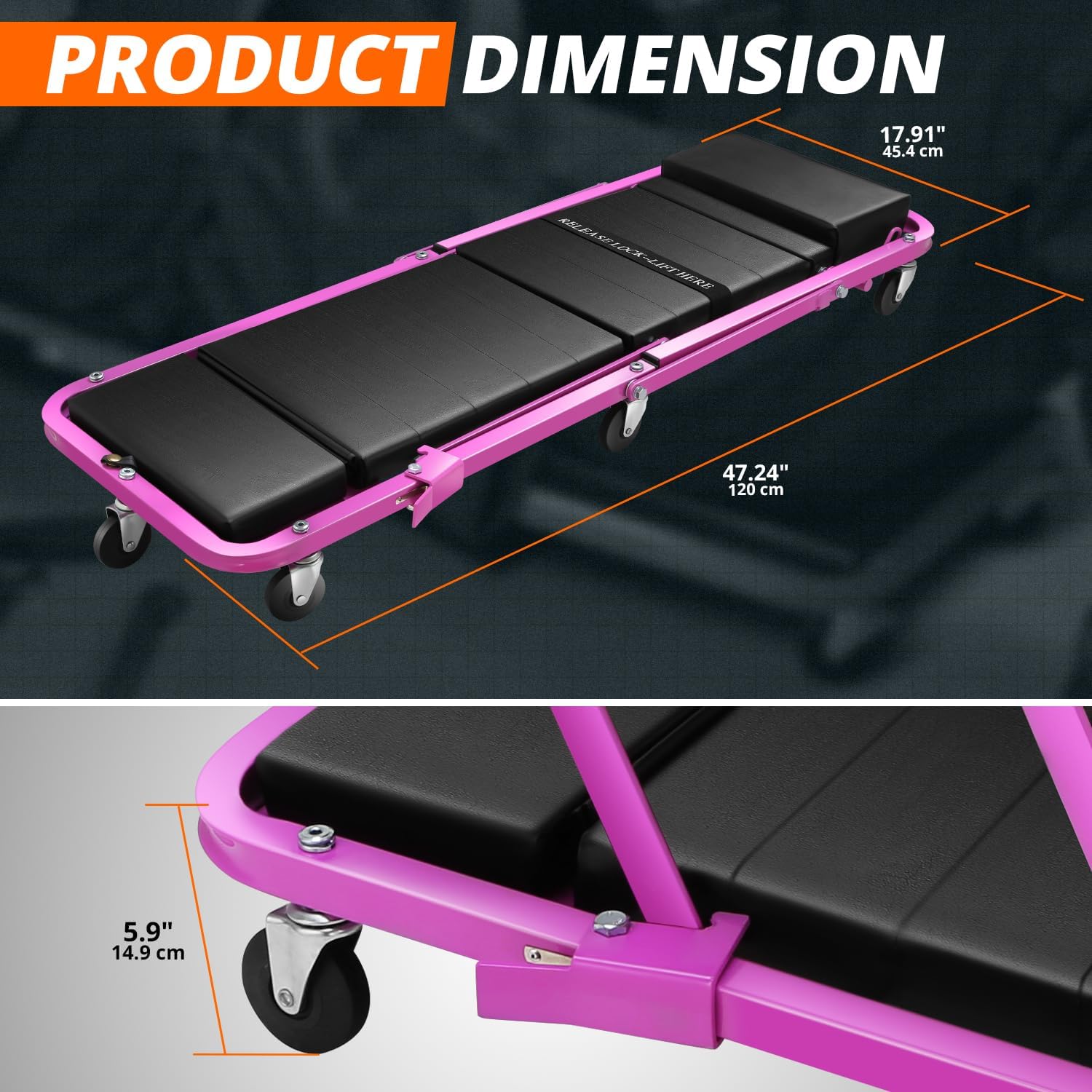 DNA MOTORING 48" 2 IN 1 Folding Rolling Garage Shop Creeper Roller Seat, 7 Pcs 2" Casters, 350 Lbs Weight Capacity, Purple, TOOLS-00193-PR
