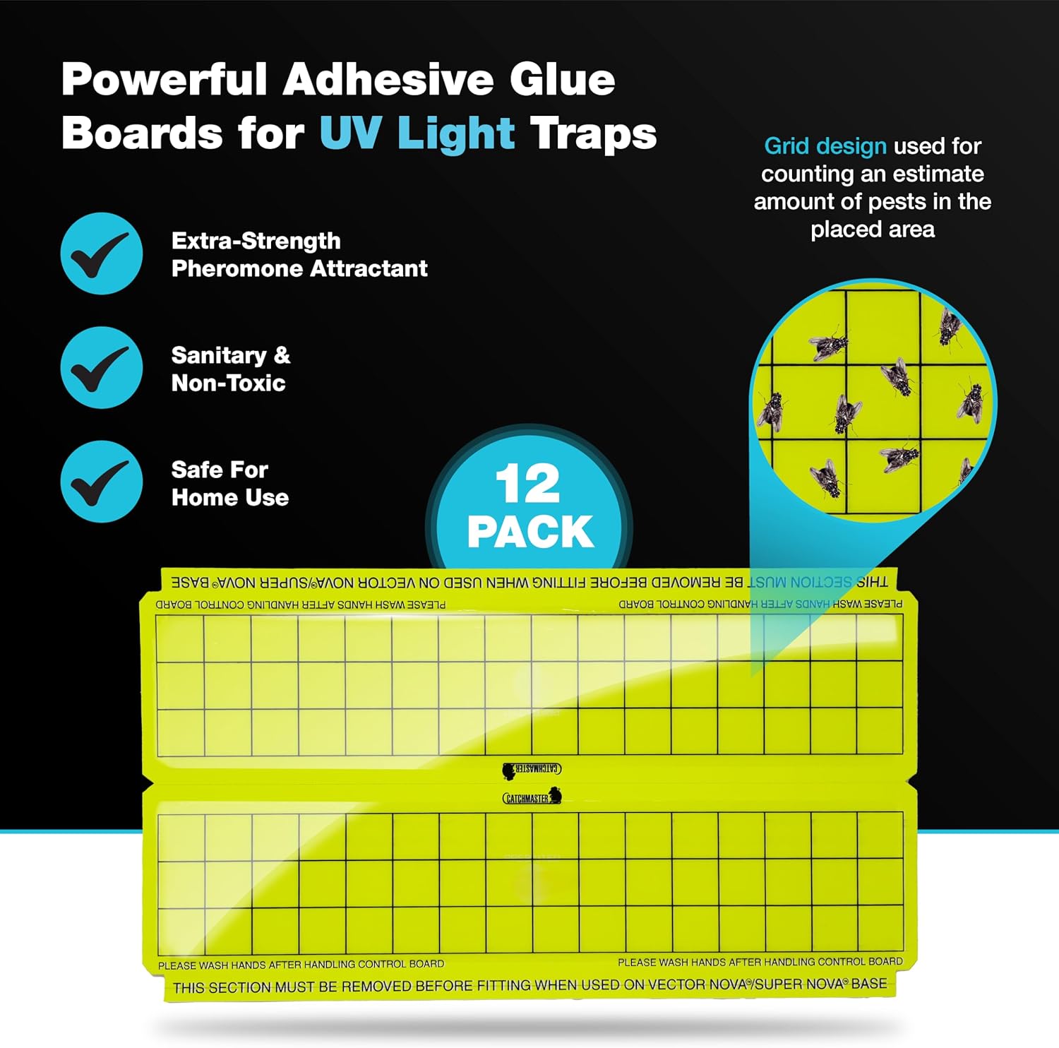 - GLUE BOARD REFILLS FOR UV TRAP: This set includes 12 replacement glue boards with perforations to create 24 glue boards compatible with Vector Fly Light Traps, including the Vector Classic, Vector Plasma Grill, Vector Plasma Screened, Vector Plasma One, Vector 15, Vector 30, and Vector Optima. The Vector Light Traps are sold separately.