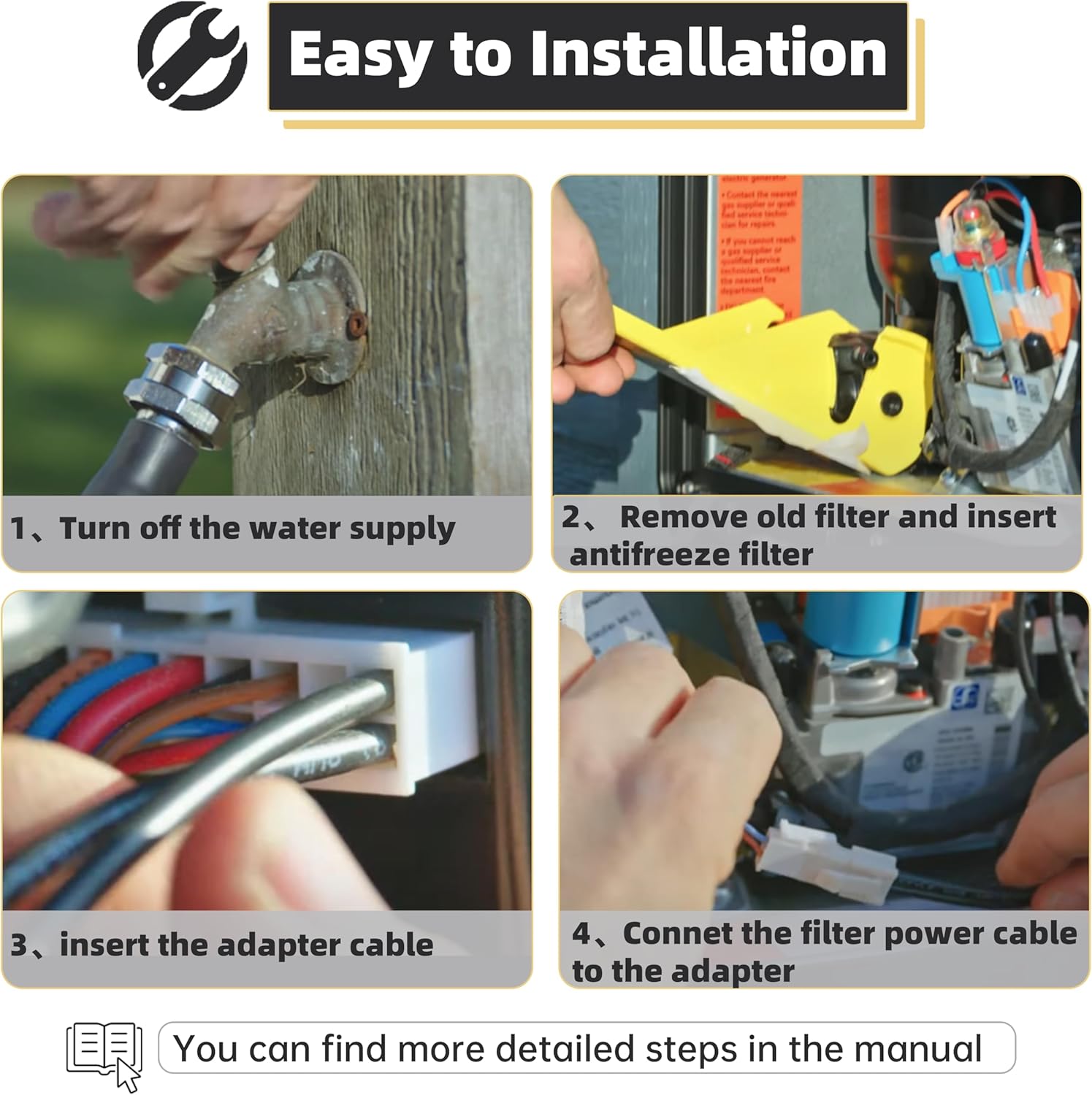 - 【Simple Installation】Upgrading your water heater system with the electric antifreeze kit is effortless. The user-friendly design ensures a hassle-free setup, allowing you to install it in just a few minutes. Just connect the antifreeze kit to the "Easy Drain Lever" and plug it into the cable harness—no complicated instructions or tools needed. Enjoy a smooth and efficient installation process with ease