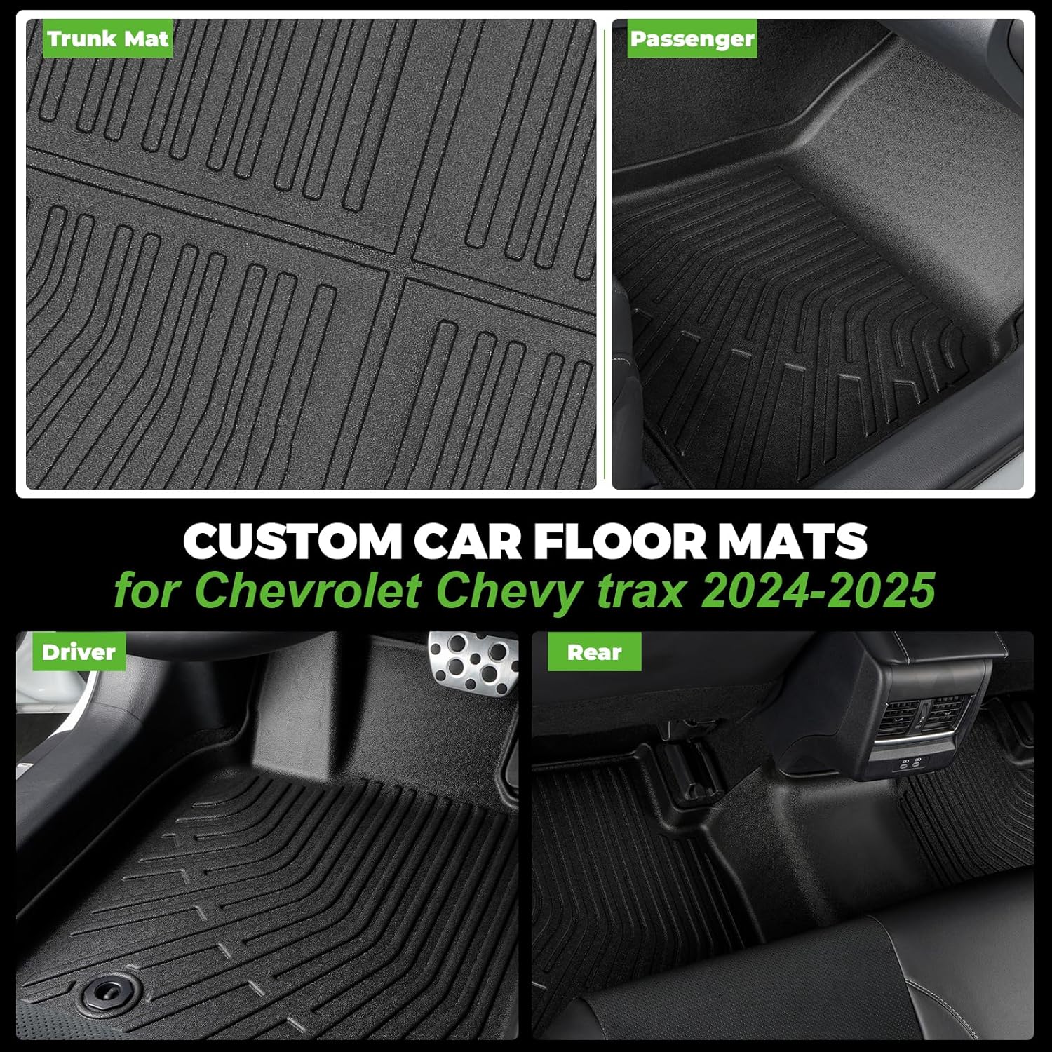 - ăPrecise FităSuitable for Chevy Trax 2024 2025 all-weather foot mats and cargo mats. Through 3D laser scanning technology, accurately cover your car carpet and fit your car like a glove. During the design process, attention was paid to details such as throttle and brakes, which will not affect your driving experience.