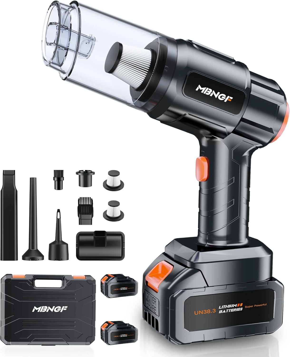 - ă35000PA High Power Suctionă Experience powerful cleaning with the MBNGF X9 ULTRA car vacuum. Its 35000PA high suction force effortlessly picks up stubborn dirt, dust, and debris.
