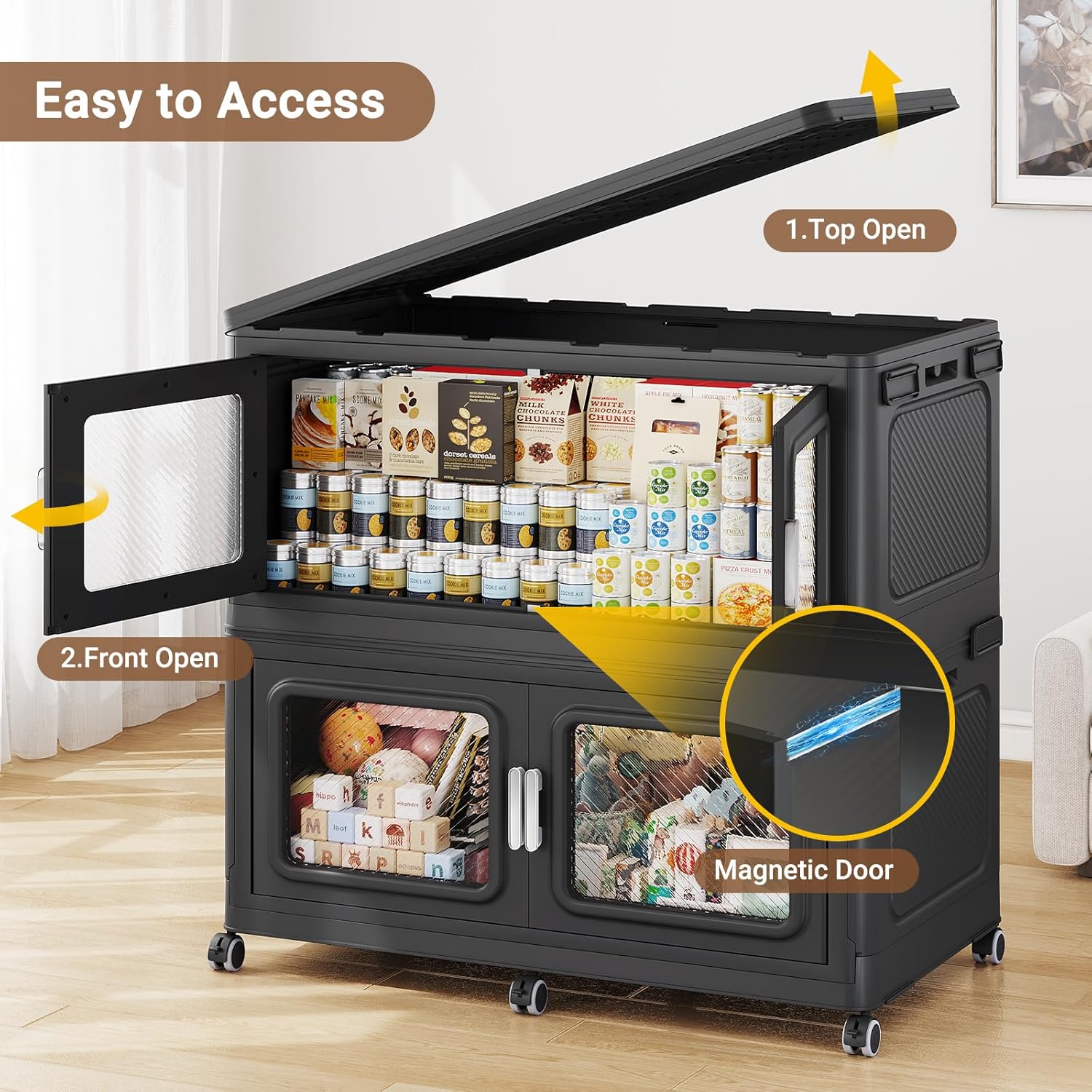 - 【Stackable Design & 360° Rotating Wheels】Our stackable storage bins with wheels design enables secure multi-layer stacking, reinforced by double side 2-buckles and 1 rear buckle for stability. Heavy-duty storage cabinet equipped with 6 TPR-coated 360° swivel wheels for effortless mobility, keeping spaces tidy and organized