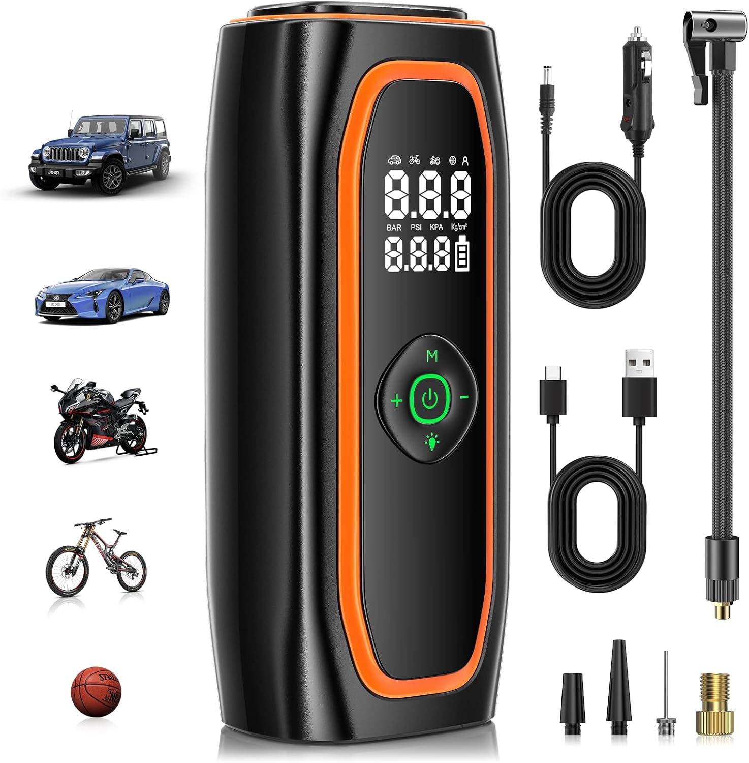 - 【4X Faster Inflation & Highly Accurate】Car tire air pump portable is the latest design from 2025, and it comes with a high-efficiency motor that boosts inflation speeds up to 36L/Min, so it takes less than 5 minutes to inflate a 195/65/R15 car tire from 0 psi to 35 psi. In addition, our tire inflator portable air compressor is maintained at ±1%. It's the perfect companion for the road!