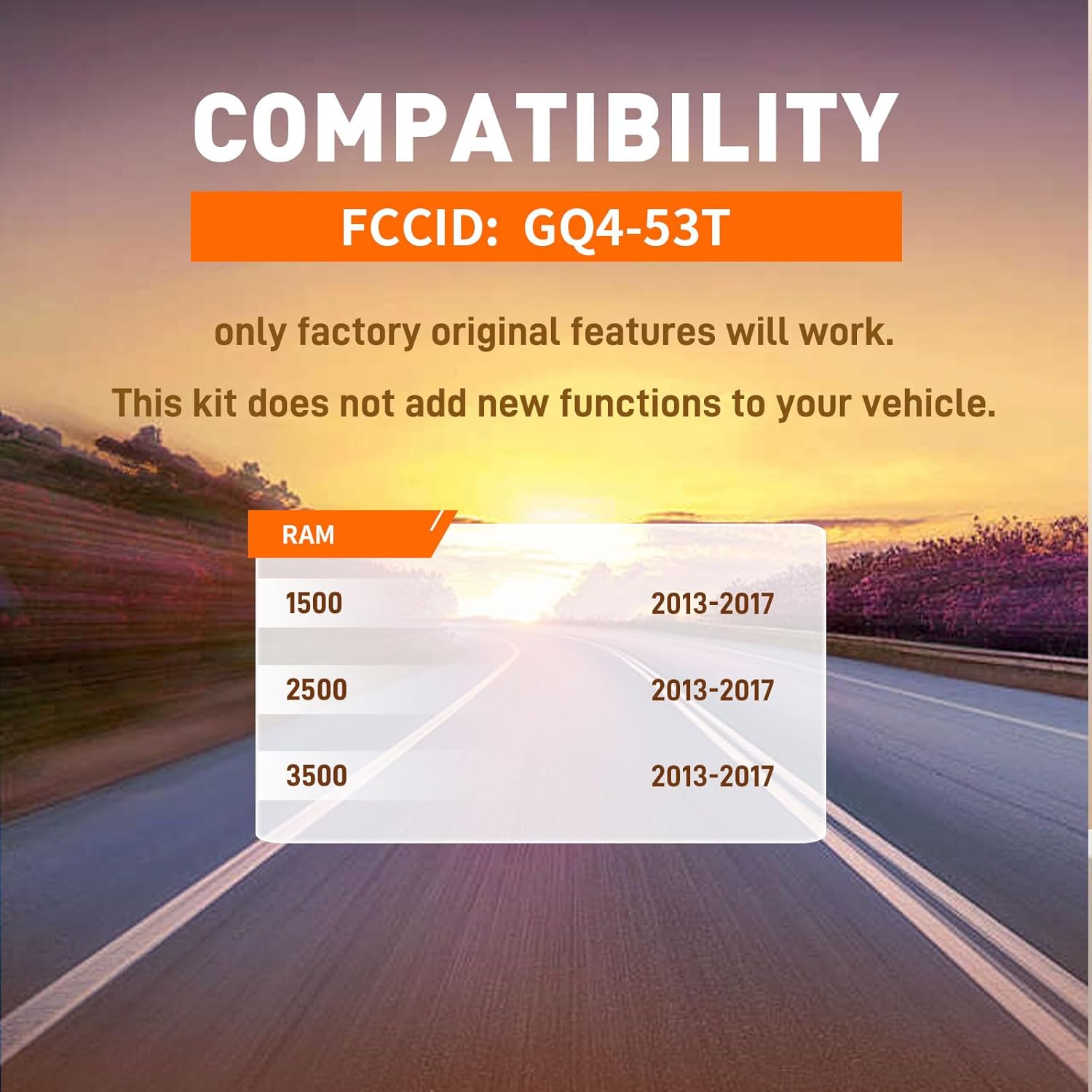 - FCC ID: GQ4-53T, This key fob replacement is compatible with Dodge RAM 1500 2500 3500 2013 2014 2015 2016 2017.