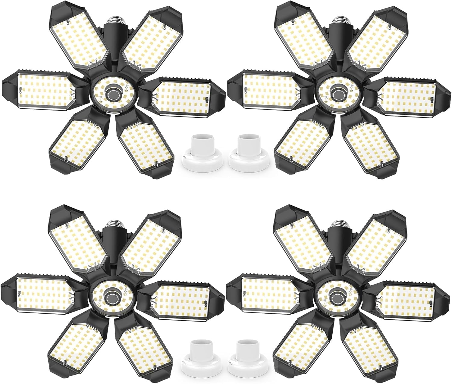 4 Pack LED Garage Lights,220W Super Bright Ceiling Led Shop Lights,Deformable Scew in E26 Base Garage Light for Basement Warehouse Workshpo