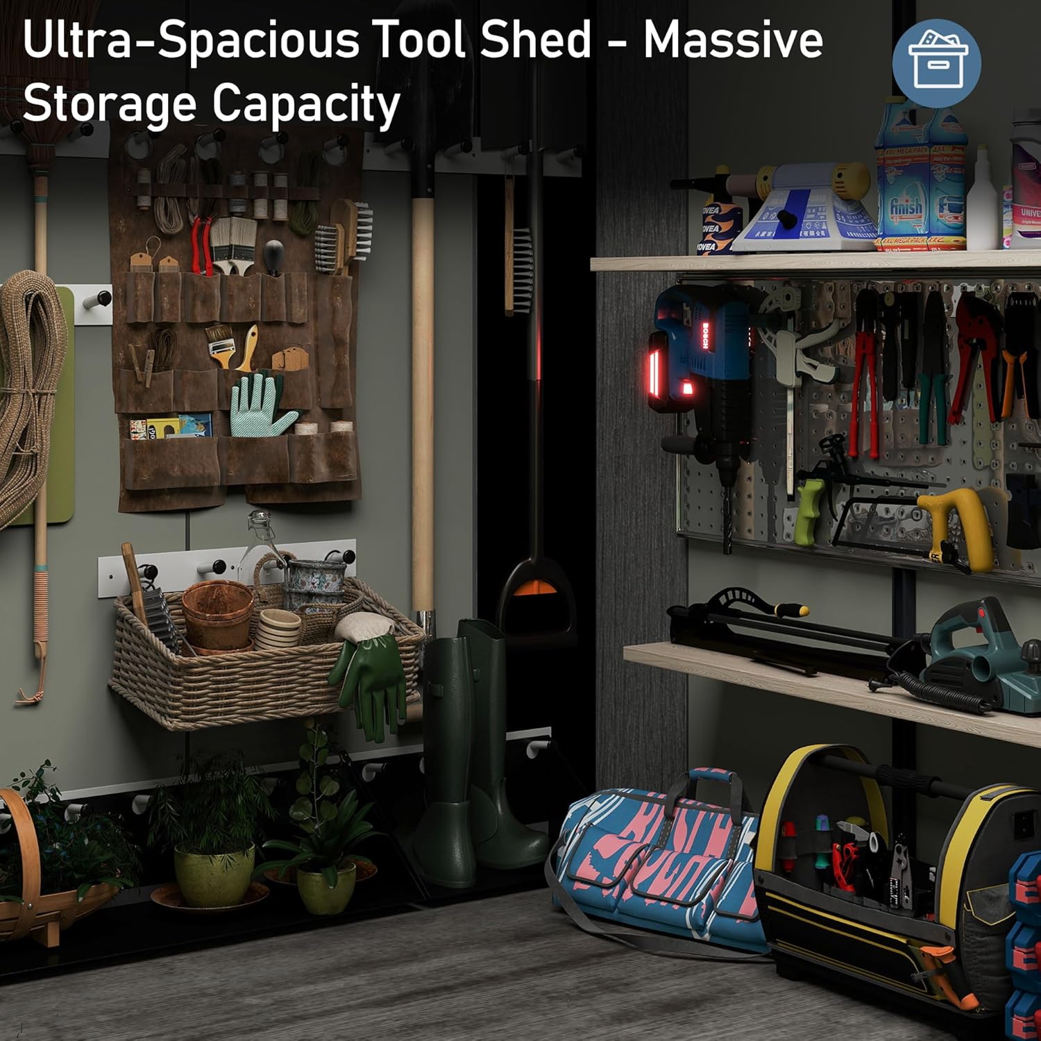 - Spacious 8x8 FT Outdoor Storage Solution: Designed to hold everything from lawn mowers and garden tools to bikes, pool supplies, and trash bins—ideal for organizing your outdoor essentials in one secure place.
