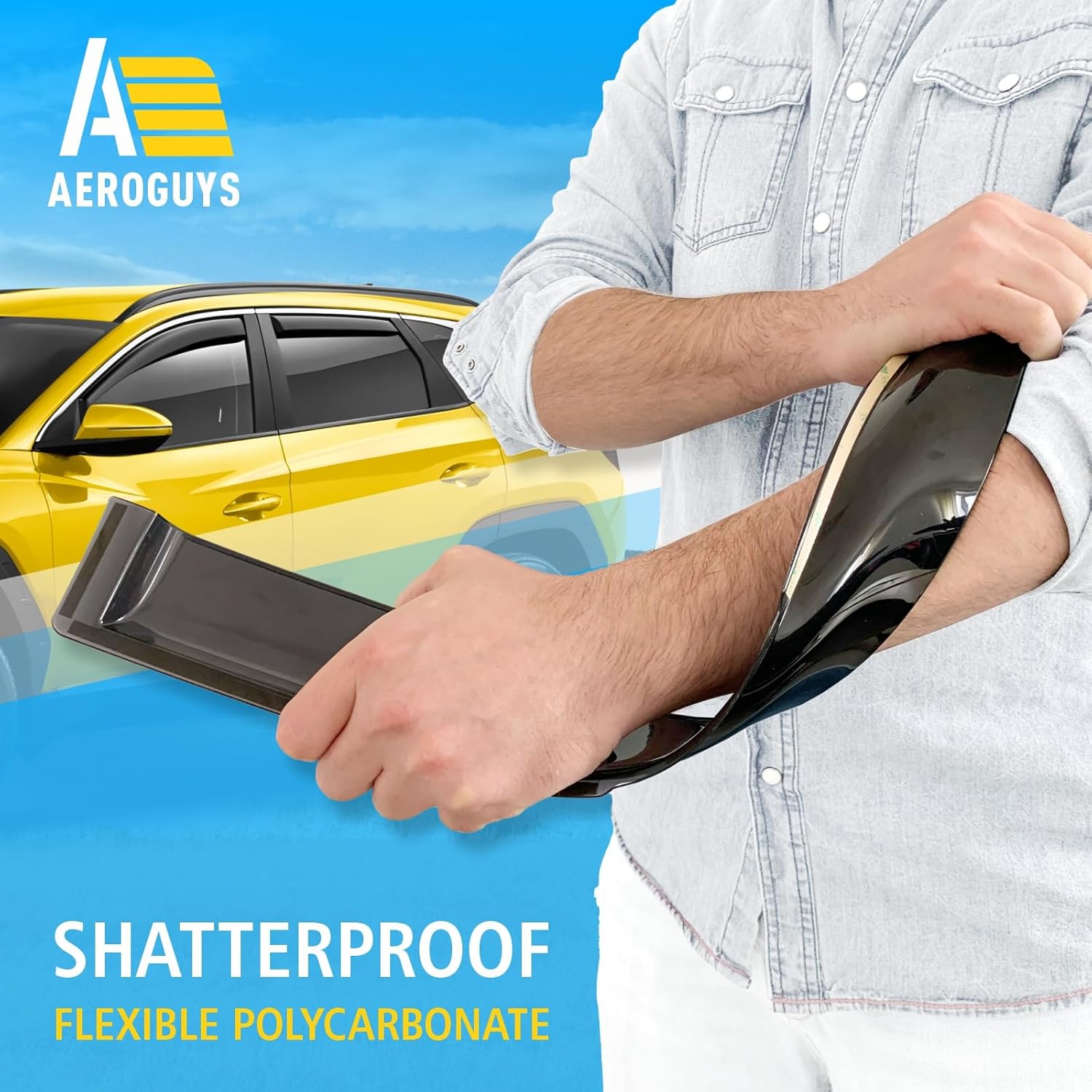 - Incredibly Durable AEROGUYS Auto Window Deflectors – They are made with strong and tough polycarbonate which is clear and scratch-resistant. They also provide UV protection making your ride more comfortable under all weather conditions.