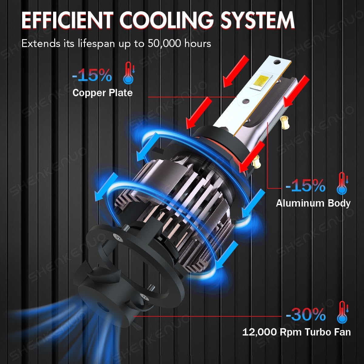 - [Super Brightness,Illuminates the Way Forward]:HOEDUI latest matrix chip has increased luminous efficiency by 500%,achieving ultra-high brightness of 35000lm per group and 6500k cool white light,illuminating every detail on the road,making driving more comfortable and safe