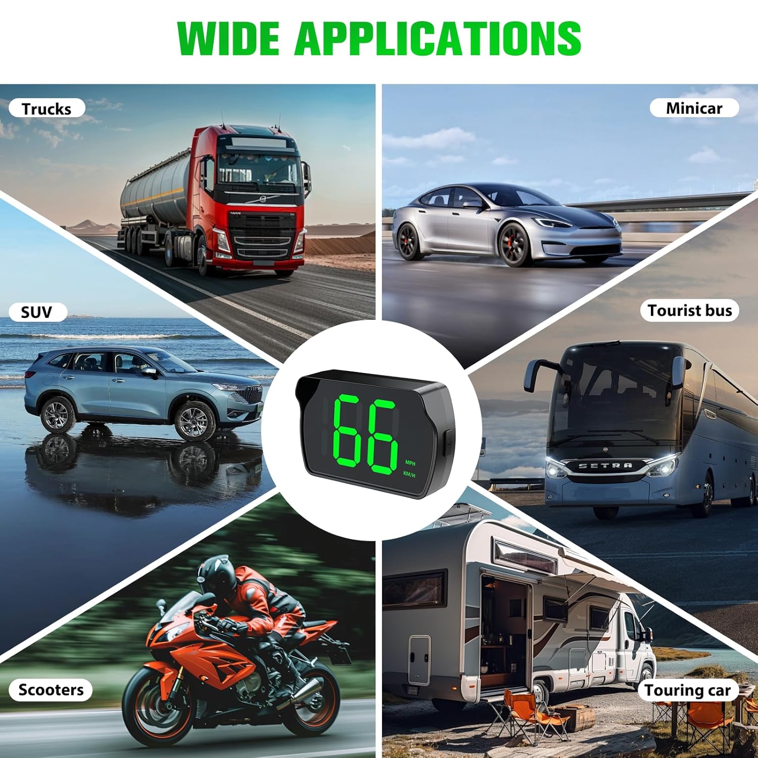- Advanced GPS Technology: The digital speedometer for cars uses high-precision GPS satellite technology to display accurate speed readings in real time. This standalone system operates independently from your vehicle's systems, making it compatible with all types of vehicles including cars, trucks, motorcycles, and golf carts