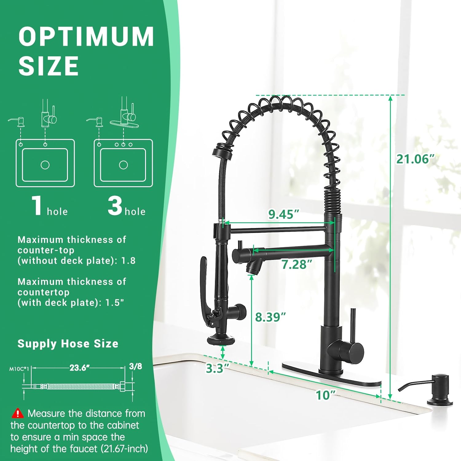 Fapully Commercial Pull Down Kitchen Sink Faucet with Sprayer Matte Black Single Handle Faucets for Kitchen Sink, Kitchen Faucet with Soap Dispenser and Deck Plack for 4 Hole