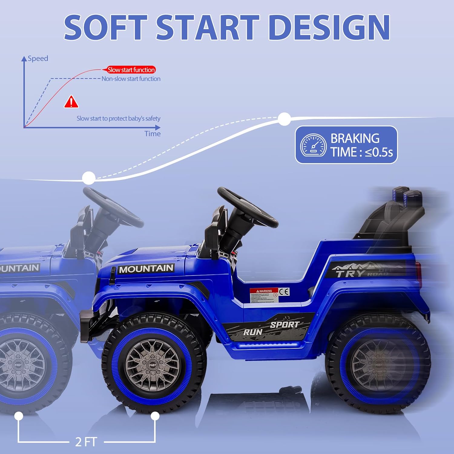 - Self-Driving & Parental Control: Kids can operate the toddler ride on car using the steering wheel and pedals, while parents have the option to monitor and control their child's driving with a 2.4G remote. The remote allows for two levels of speed adjustment (1.8-3.1 mph) and includes a P-stop button, enabling parents to park the car remotely and ensure their child’s safety.