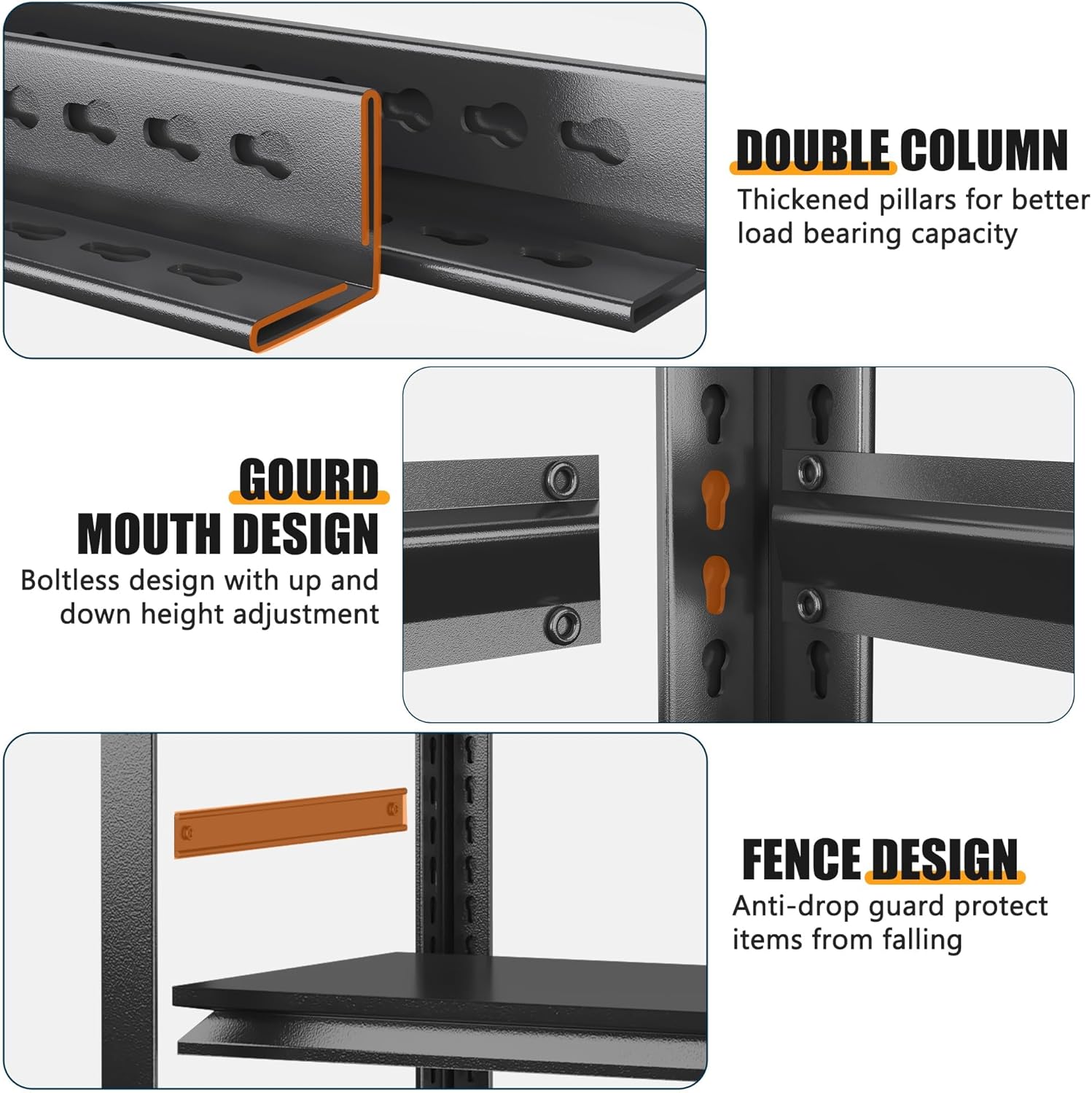 Heavy Duty Commercial Metal Garage Shelving Rack,Adjustable Industrial Steel Storage Shelves for Warehouse, Garage, Basement, 87" H x 47.2" W x 23.6" D, Black