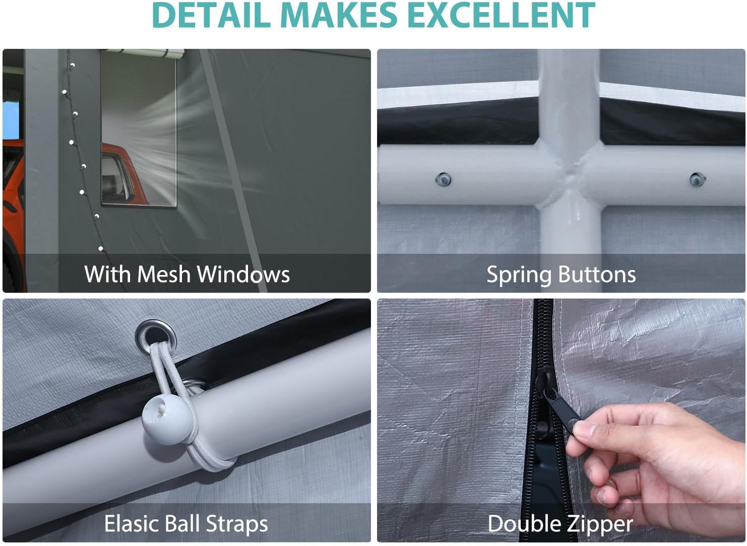 - 【Ventilated Design】: Designed with two mesh windows on each sidewall, this portable garage improves airflow and reduces moisture, keeping your vehicle dry and well-protected.