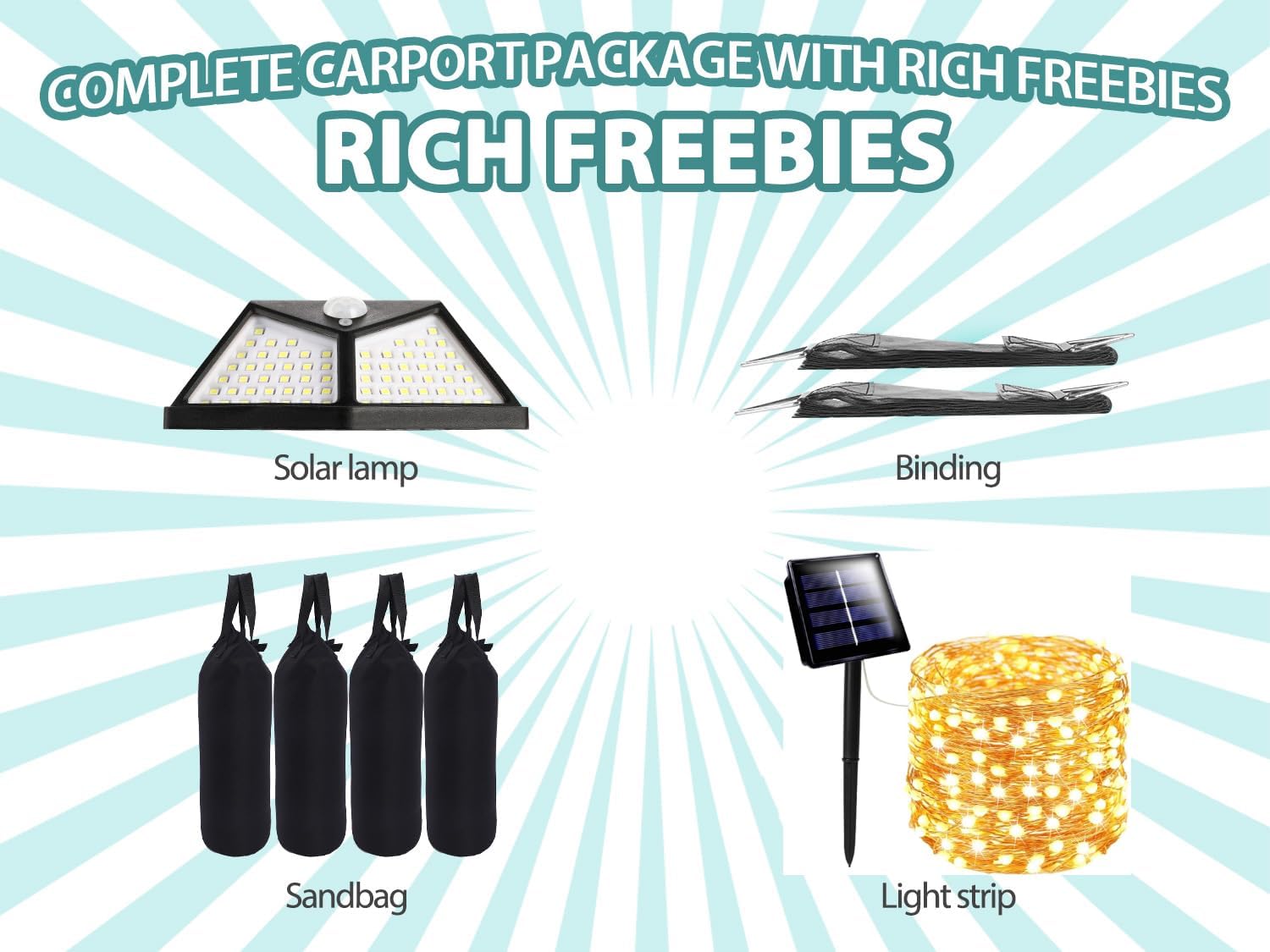 - 【Great Value Package】: This car port comes with high-quality materials and extras like solar lights, a light belt, bindings, and windproof sandbags, making it a great value purchase.