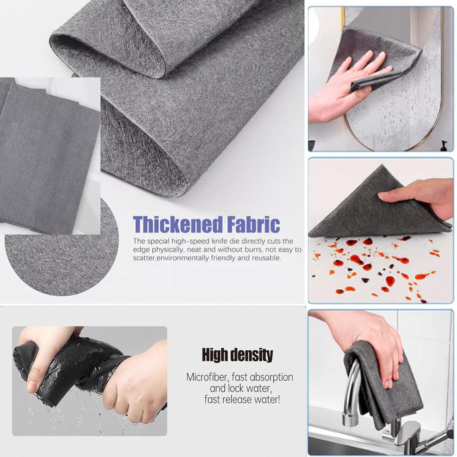 - 【Washable & Reusable Design】 Soft, odorless, and built for repeated use, these microfiber towels can be rinsed and reused countless times. Simple & Versatile, Wet it, wipe, rinse, reuse. No complicated steps! Use wet for deep cleaning or dry for dusting and polishing. Perfect for car detailing, countertop polishing, or general kitchen cleanup—gentle on surfaces. Stop wasting money on paper towels, tissues, and old rags!