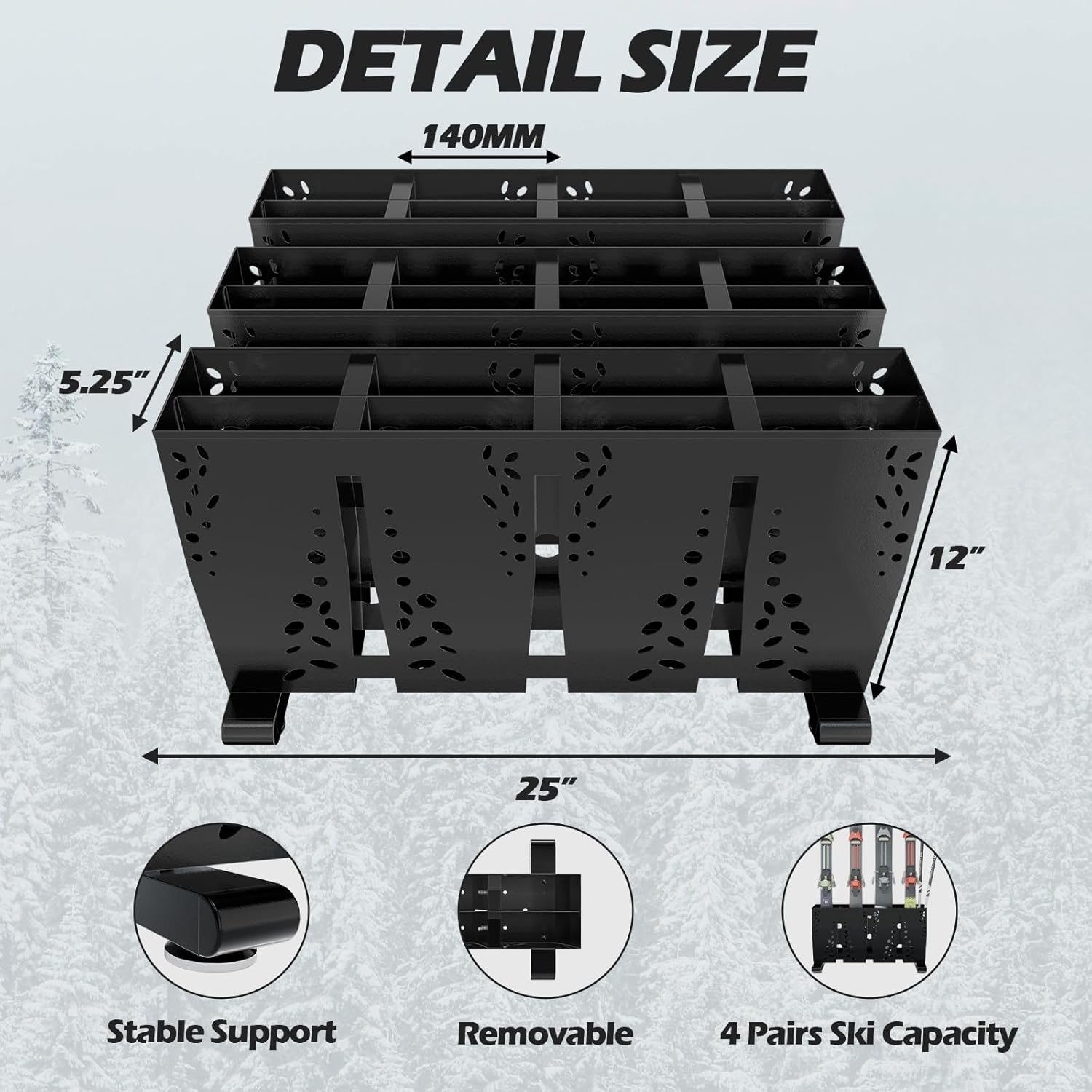 - Holds 12 Pairs of Skis – Designed to securely store up to 12 pairs of skis, this ski storage rack is perfect for keeping your garage or home organized and free of clutter.